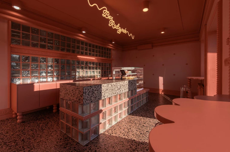 Poznańska pracownia tortów BezRodzynek zyskała zatopione w różu wnętrze, zaprojektowane przez pracownię mode:lina™ architekci. Za koncepcję przestrzeni odpowiada Kinga Kin, która świat słodyczy przełożyła na konsekwentny, monochromatyczny język architektury wnętrz.