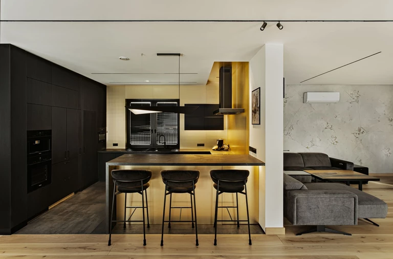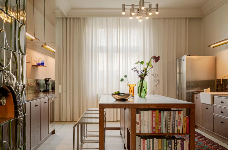 W jednym z praskich budynków z końca lat 30. XX wieku, z widokiem na Wełtawę, projektant Prokop Hartl przeprowadził renowację mieszkania dla młodej rodziny. Koncepcję oparł na wyważeniu dwóch porządków: szacunku dla historycznej tkanki wnętrza oraz współczesnych, funkcjonalnych rozwiązań.