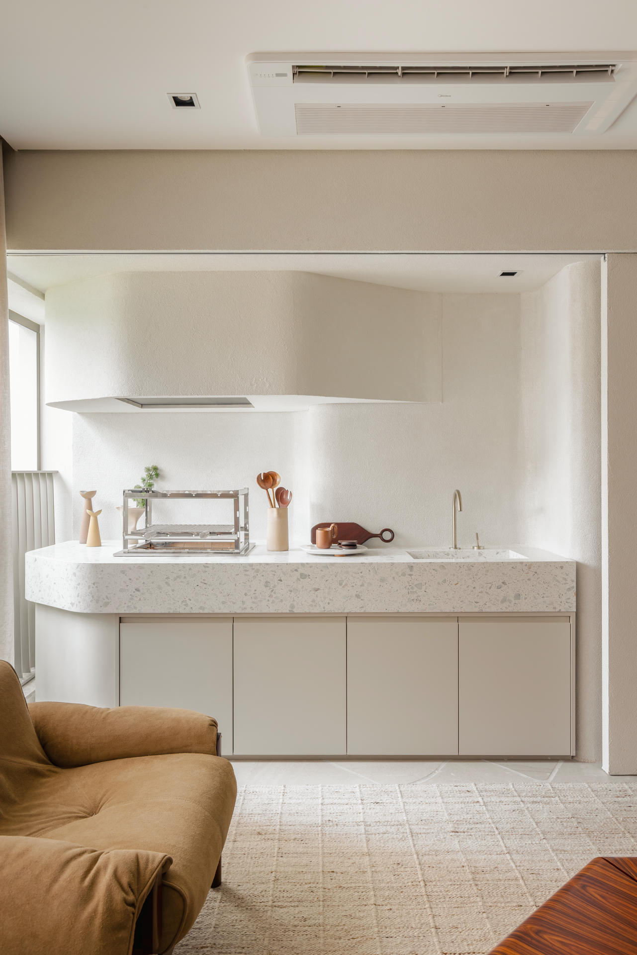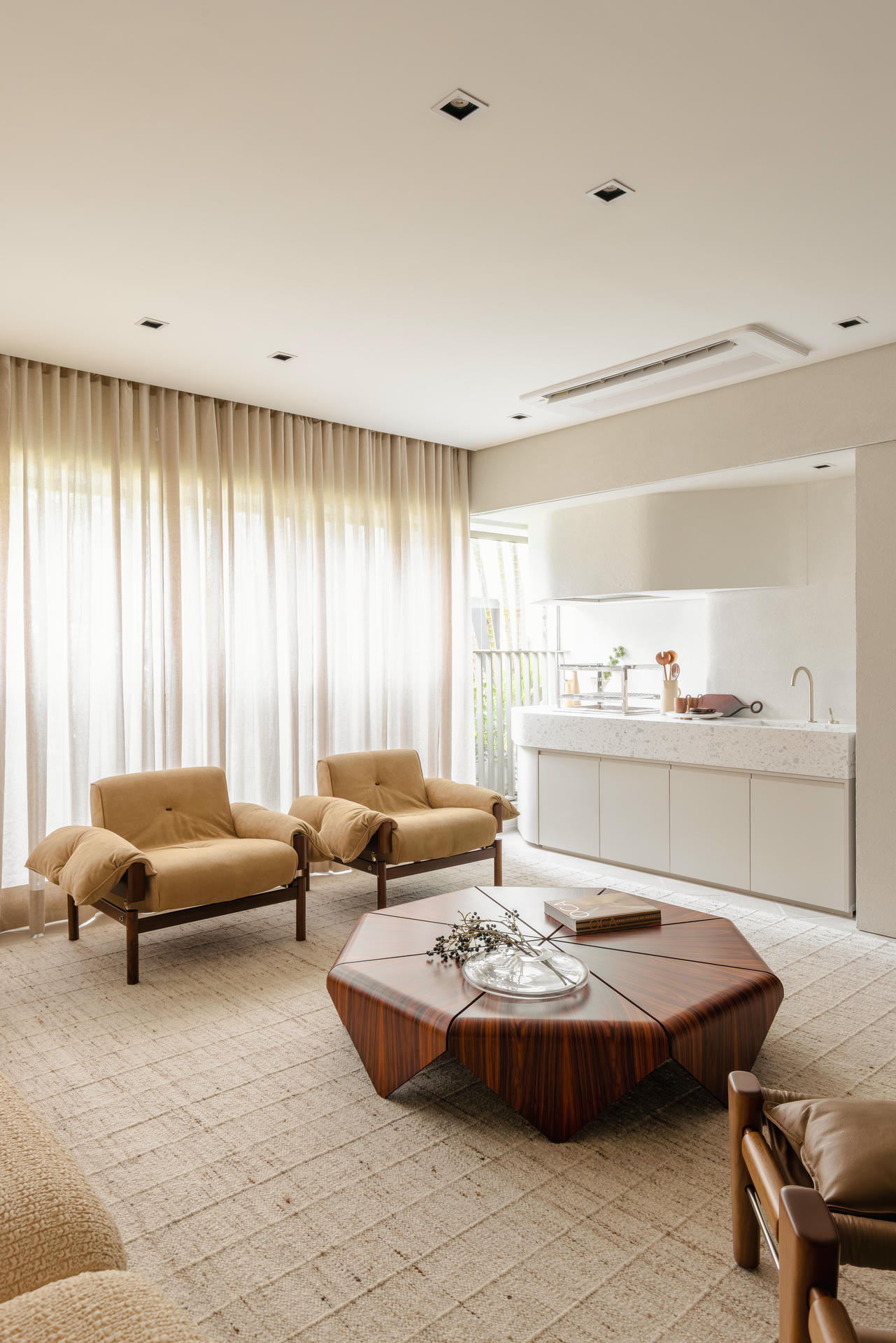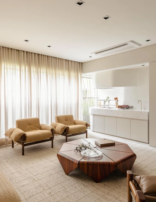 Na powierzchni 150 m² w brazylijskiej dzielnicy Moema architekci z Bohrer Arquitetos postawili na płynność i spójność – wnętrze nie jest podzielone w klasyczny sposób, lecz raczej swobodnie się rozlewa.
