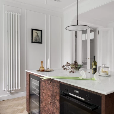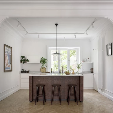 Proces przywracania blasku apartamentowi przypominał raczej mozolne odkrywanie kolejnych warstw czasu niż standardowy remont. Zamiast wymiany, zdecydowano się na wielomiesięczną, rzemieślniczą renowację oryginalnych drewnianych podłóg. Zachowano historyczne okucia z renomowanej warszawskiej pracowni Braci Lubert - detale, które od dekad zdobią okna i drzwi wewnętrzne, a nowe ramy okienne zostały wiernie odtworzone, by przyjąć te odrestaurowane, mosiężne klamki.