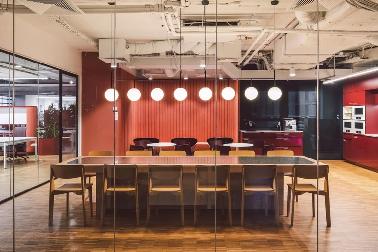 Wokół nie brakuje też większych i mniejszych sal spotkań, zarówno zamykanych, jak i półotwartych, w formie zacisznych, tapicerowanych nisz ze stołami i siedziskami. – Te ostatnie zachęcają, by ze spotkanymi w przejściu współpracownikami usiąść na chwilę do kreatywnej rozmowy. W ten sposób rodzą się często najlepsze pomysły – zaznacza Maciej Bidermann. Największa, 12-osobowa sala konferencyjna ma podwyższone parametry akustyczne sprzyjające dłuższym wideorozmowom oraz odpowiedni sprzęt elektroniczny. W sąsiedztwie znalazły się też budki do prowadzenia klasycznych rozmów telefonicznych.