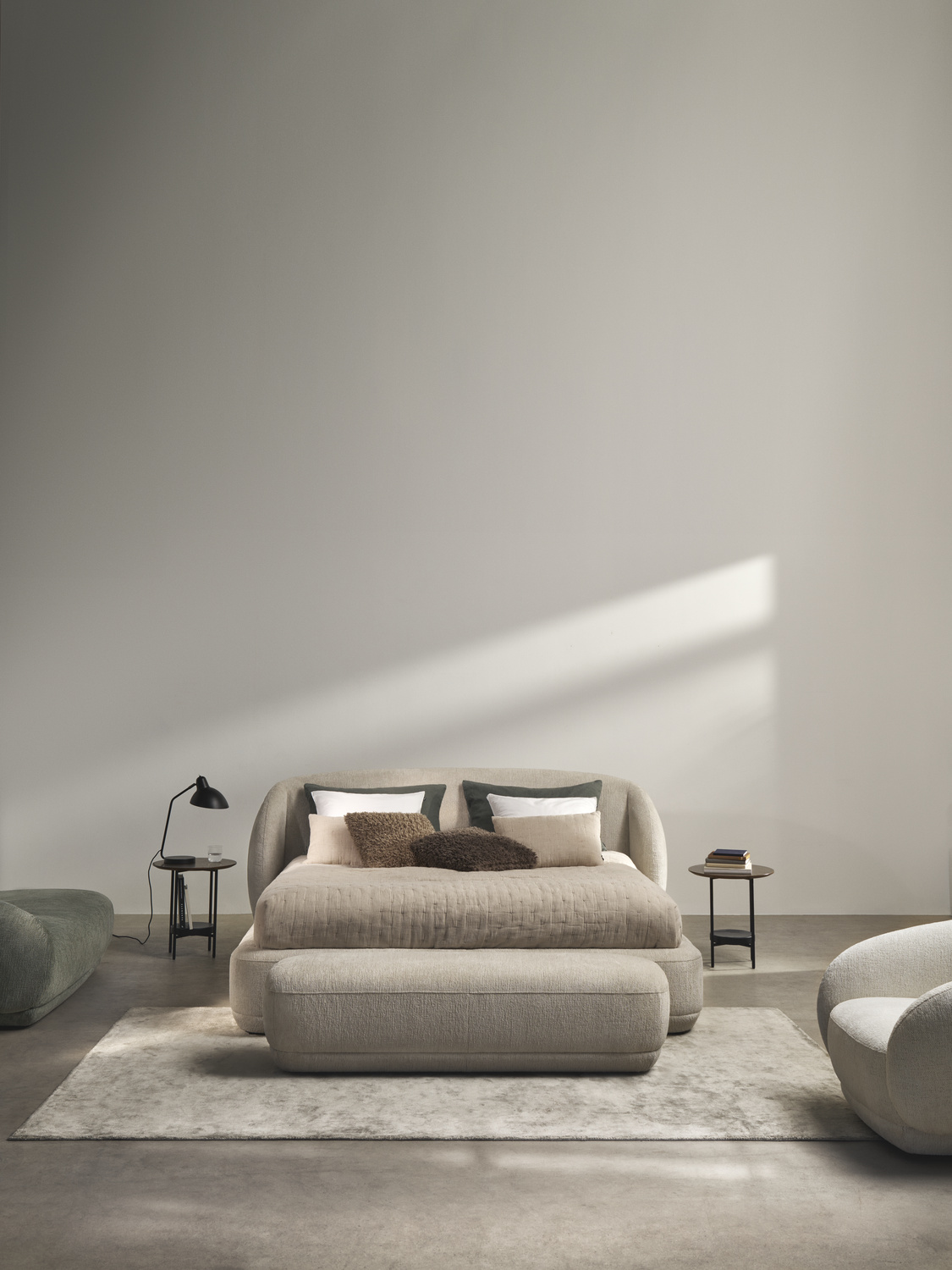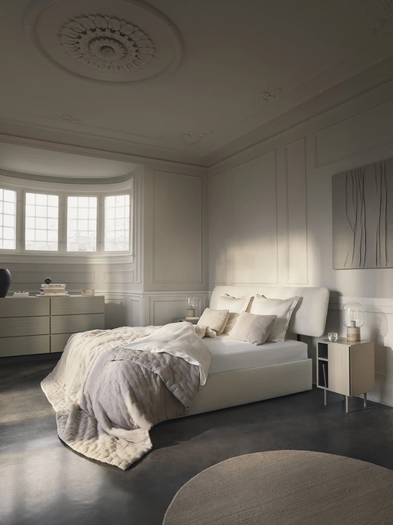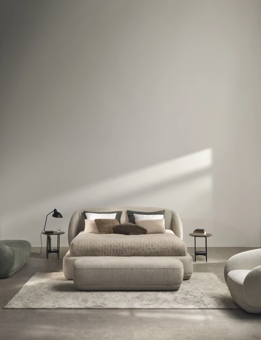 Podczas gdy w kolekcji Element chodzi o zdolność adaptacji i dostosowania, seria Bolzano to kwintesencja zmysłowego spokoju. Pluszowa, zaokrąglona i zapraszająca kolekcja Bolzano uosabia trend "Cosy Cocoon" coraz powszechniejszy we wnętrzach. Dzięki 360-stopniowemu wyglądowi, miękkiej tapicerce i uspokajającym, rzeźbiarskim kształtom, Bolzano przekształca każdą sypialnię w przytulne gniazdko.