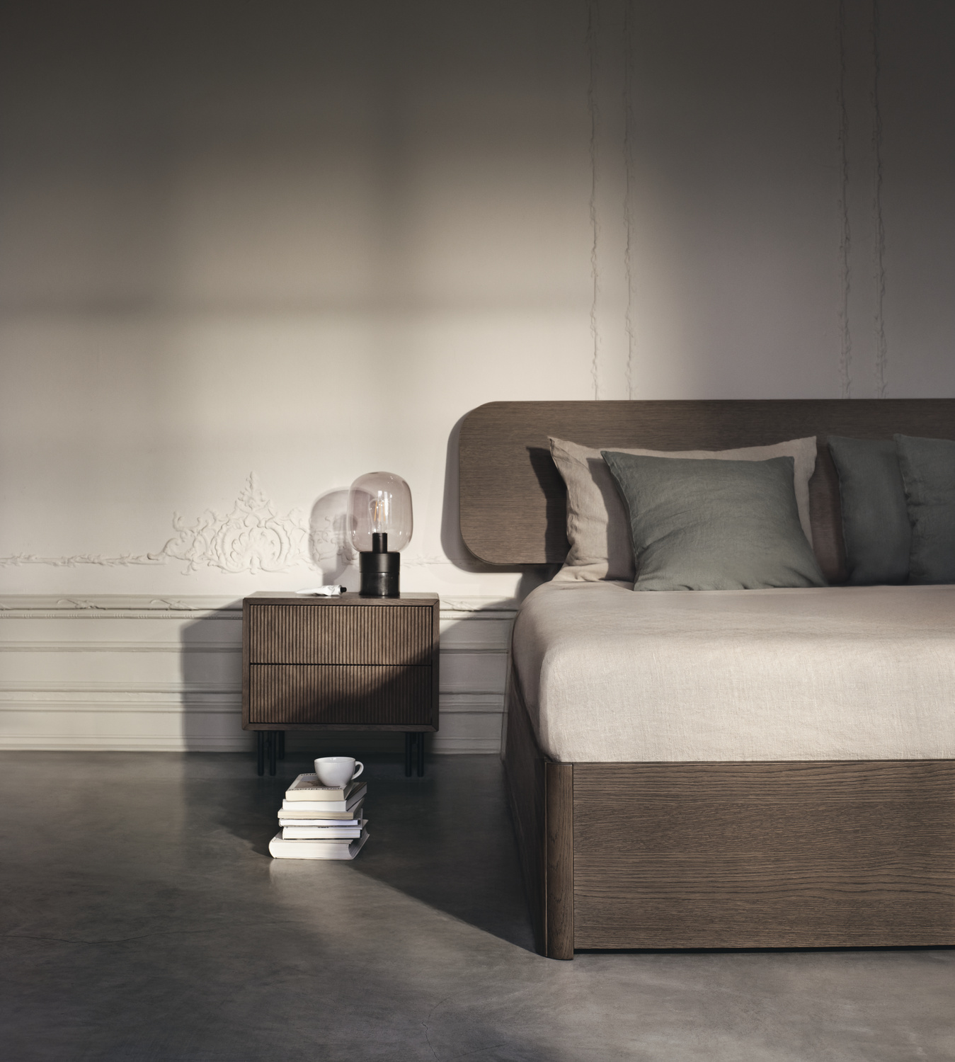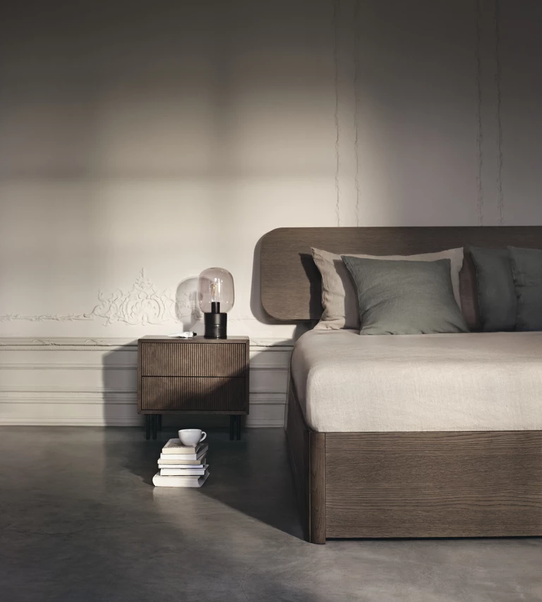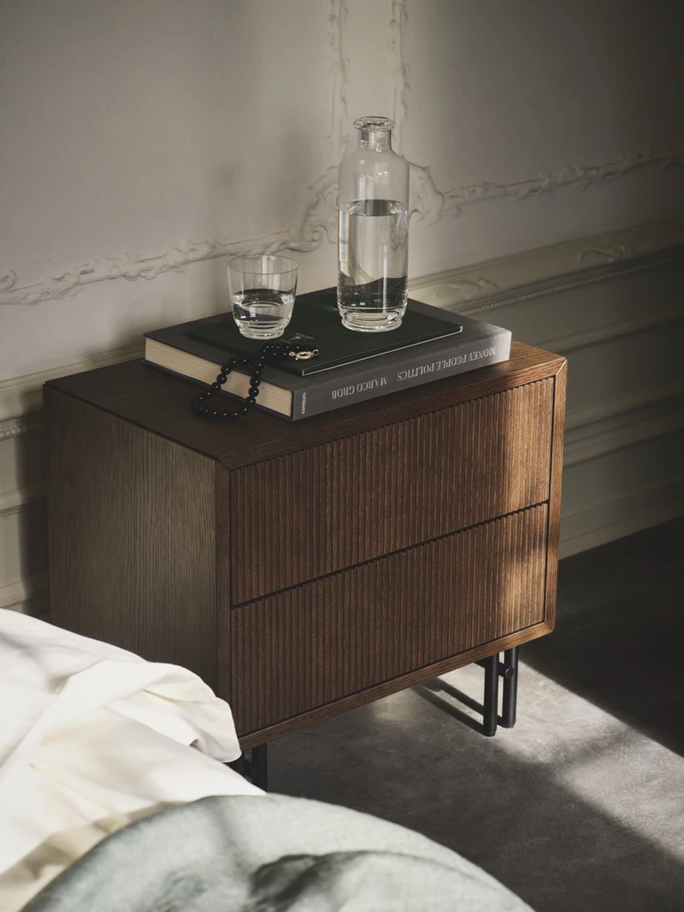 W ramach kolekcji wprowadzono również nowe szafki nocne i komody – minimalistyczne, z charakterystyczną pionową ryflowaną ramą, systemem cichego otwierania przez naciśnięcie oraz solidnymi metalowymi nogami. To połączenie funkcjonalności i ponadczasowego wzornictwa, doskonale wpisujące się w filozofię współczesnego designu.