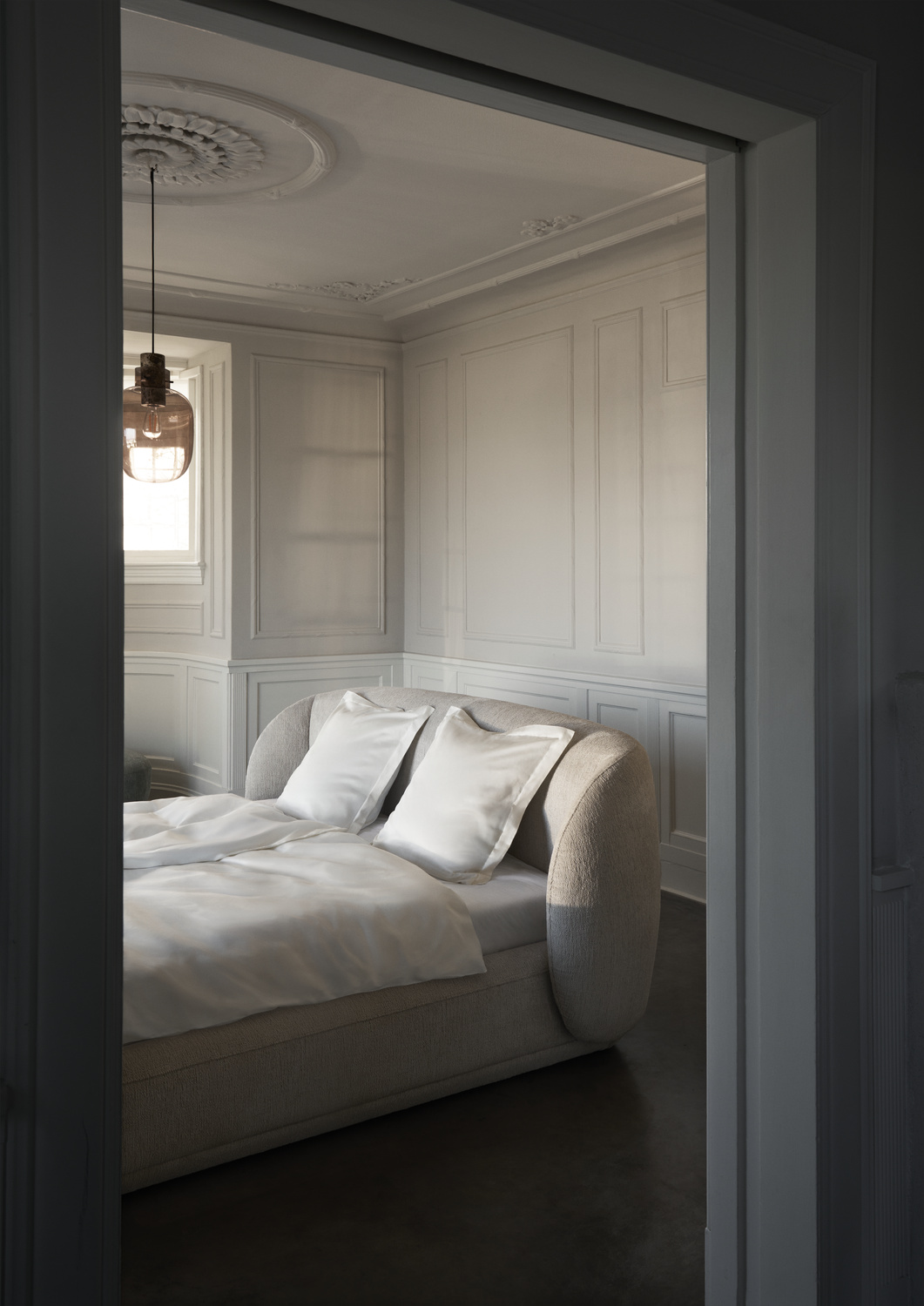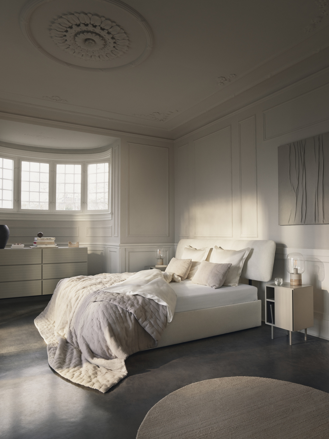 W czasach cyfrowego przeciążenia projektowanie sypialni musi przesunąć nas z zaawansowanej technologii na zaawansowany dotyk – wyjaśnia Georgsen. – Krągłości wprowadzają poczucie spokoju, a organiczne kształty są niezbędne, aby meble nadawały się do codziennego życia i były kojące sensorycznie.