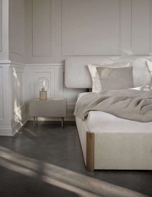 Każdy element kolekcji został dopracowany z najwyższą dbałością o proporcje i wygodę. Zaokrąglone wezgłowie, gładkie matowe powierzchnie czy miękkie ramy obite tkaniną podkreślają przyjemny, otulający charakter mebla. Estetyka ta harmonizuje z trendami wskazywanymi przez WGSN, według których kolory, tekstury i immersyjne oświetlenie są kluczowe dla tworzenia sypialni o regenerującym, kokonowym charakterze.