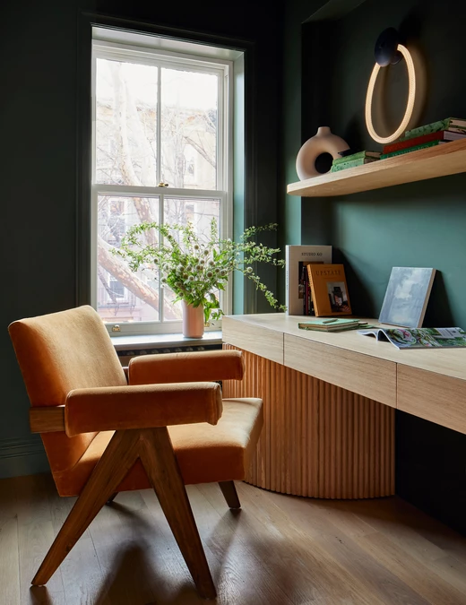 W sercu Boerum Hill, jednej z najbardziej pożądanych dzielnic Brooklynu, pracownia Barker Architecture Office stworzyła wnętrze, które jest mistrzowską grą głębokiego koloru, rzeźbiarskich form i szlachetnych materiałów. Projekt kamienicy, pomyślanej dla towarzyskiej, trzyosobowej rodziny, to seria połączonych ze sobą przestrzeni, z których każda ma swój unikalny charakter.
