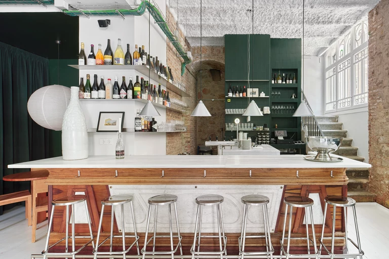 Architekci z pracowni H3o oraz kolektyw Tibeti Club miksują tu północnoeuropejskie podejście do projektowania wnętrz z lokalną tradycją. Kontrastują surowe wykończenia sklepień sufitowych, charakterystycznych dla katalońskiej architektury, odsłonięte ceglane ściany czy gruby aksamitu z elementami ze stali nierdzewnej, drewna i marmuru.