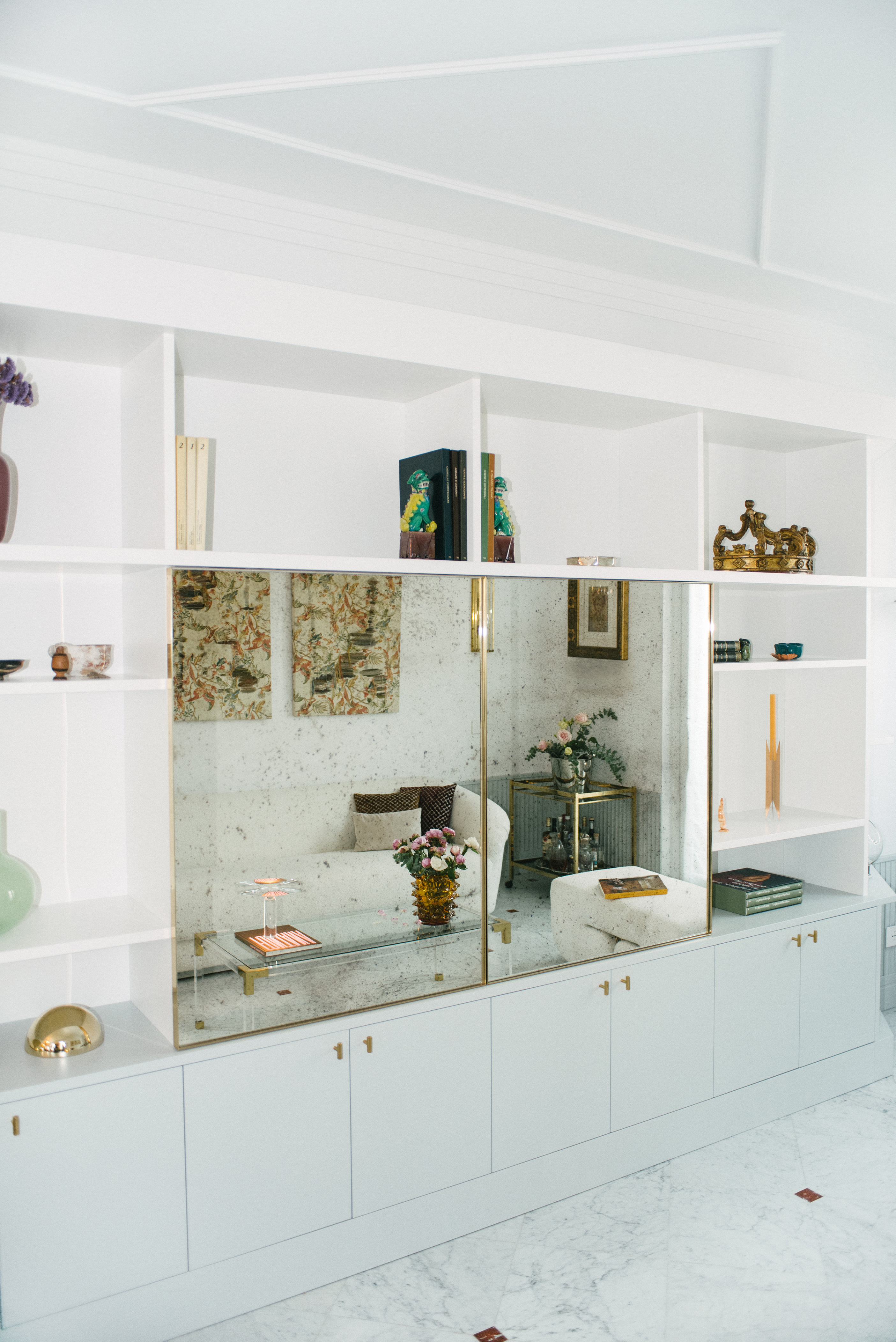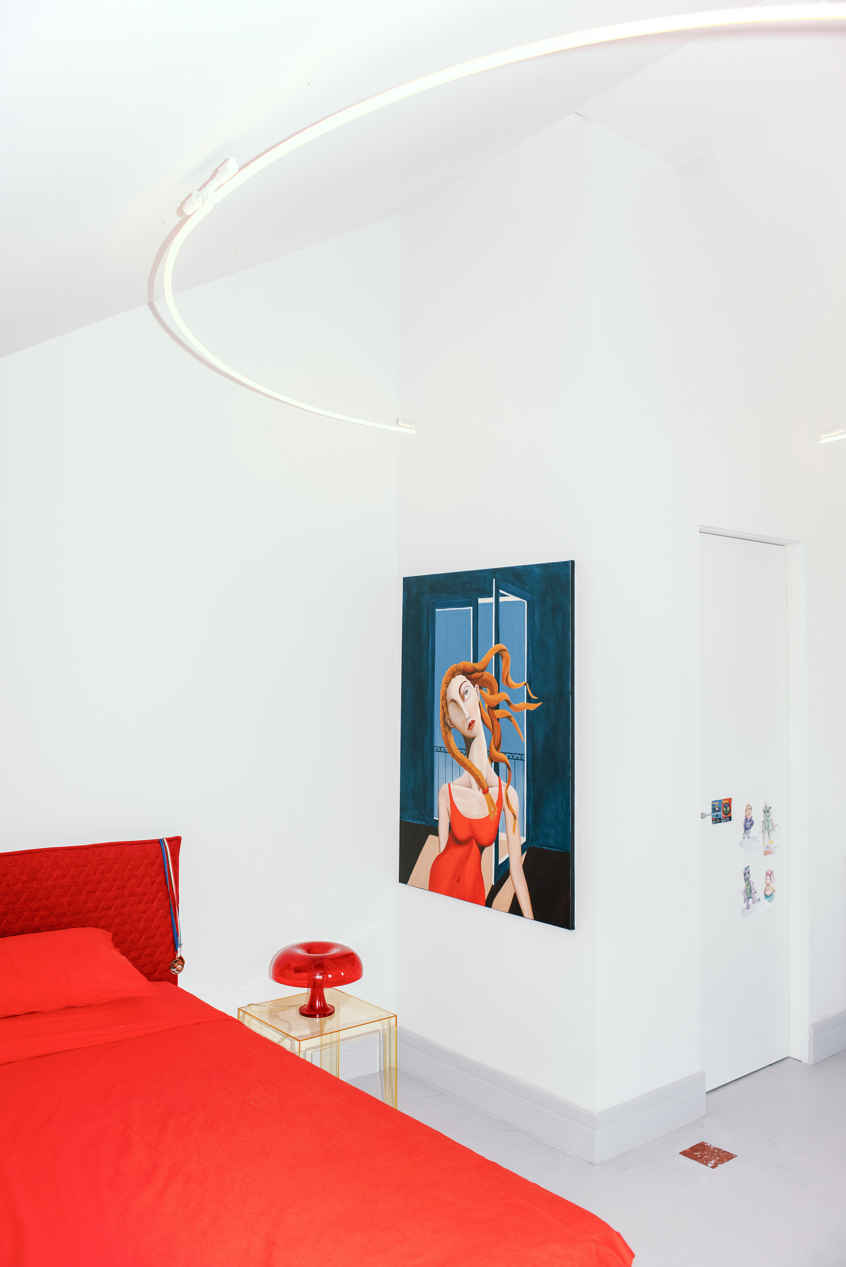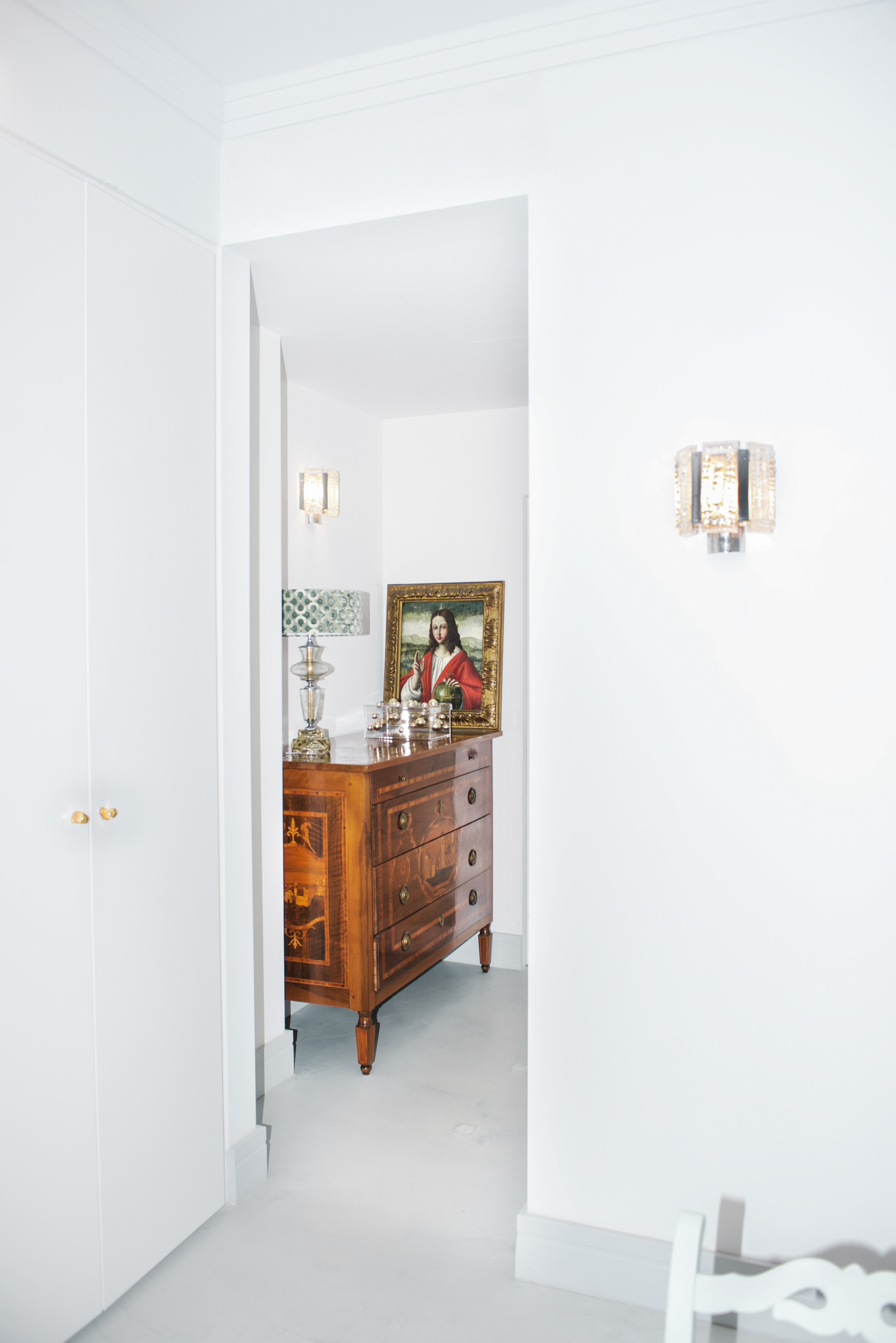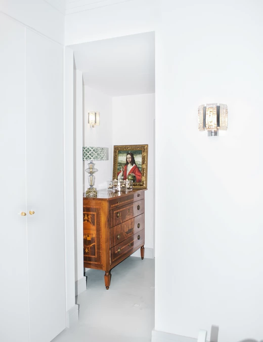 Dolna kondygnacja, dedykowana właścicielom - parze młodych prawników - utrzymana jest w języku klasycznym, wyrafinowanym i stonowanym. To tutaj wyeksponowano kolekcję sztuki i unikatowe meble. XVII-wieczne antyki sąsiadują tu z krzesłami Philippe'a Starcka dla Kartell, a monumentalny żyrandol Barovier & Toso kontrastuje z technicznym oświetleniem autorstwa Achille Castiglioniego.