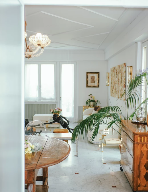 Projekt Ca’ Mnemosyne powstał z połączenia dwóch oddzielnych mieszkań w jeden, dwupoziomowy apartament. Koncepcja architekta Eugenio Laponte opiera się na potraktowaniu pamięci jako żywej substancji - aktywnego czynnika, który kształtuje każdą decyzję projektową. Efektem jest przestrzeń będąca białą, architektoniczną szkatułą - neutralnym, świetlistym tłem dla gry materiałów, stylów i epok.