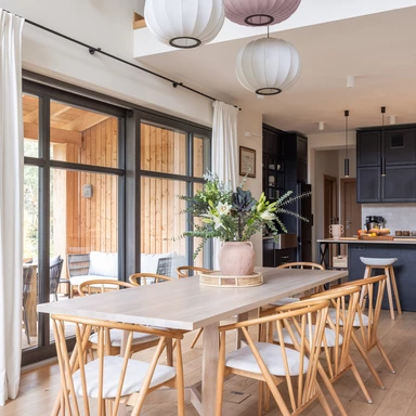 Dom o powierzchni 197 m² służy swoim właścicielom jako letnia przystań oraz miejsce spotkań z rodziną i przyjaciółmi, stanowiąc bazę do aktywnego wypoczynku na łonie natury.