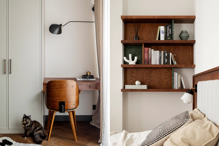 Zaprojektowane przez Lys Studio meble nawiązują detalem do estetyki warszawskich kamienicznych mieszkań z czasów dwudziestolecia międzywojennego.  Właściciele nowoczesne wnętrze już wcześniej wzbogacili klasycznymi meblami. „Przestrzeń była idealną bazą, na kolejne elementy wystroju. Mieszkanie powoli staje się eklektyczną przestrzenią, gdzie przenikają się różnorodne style” - wyjaśnia projektantka.