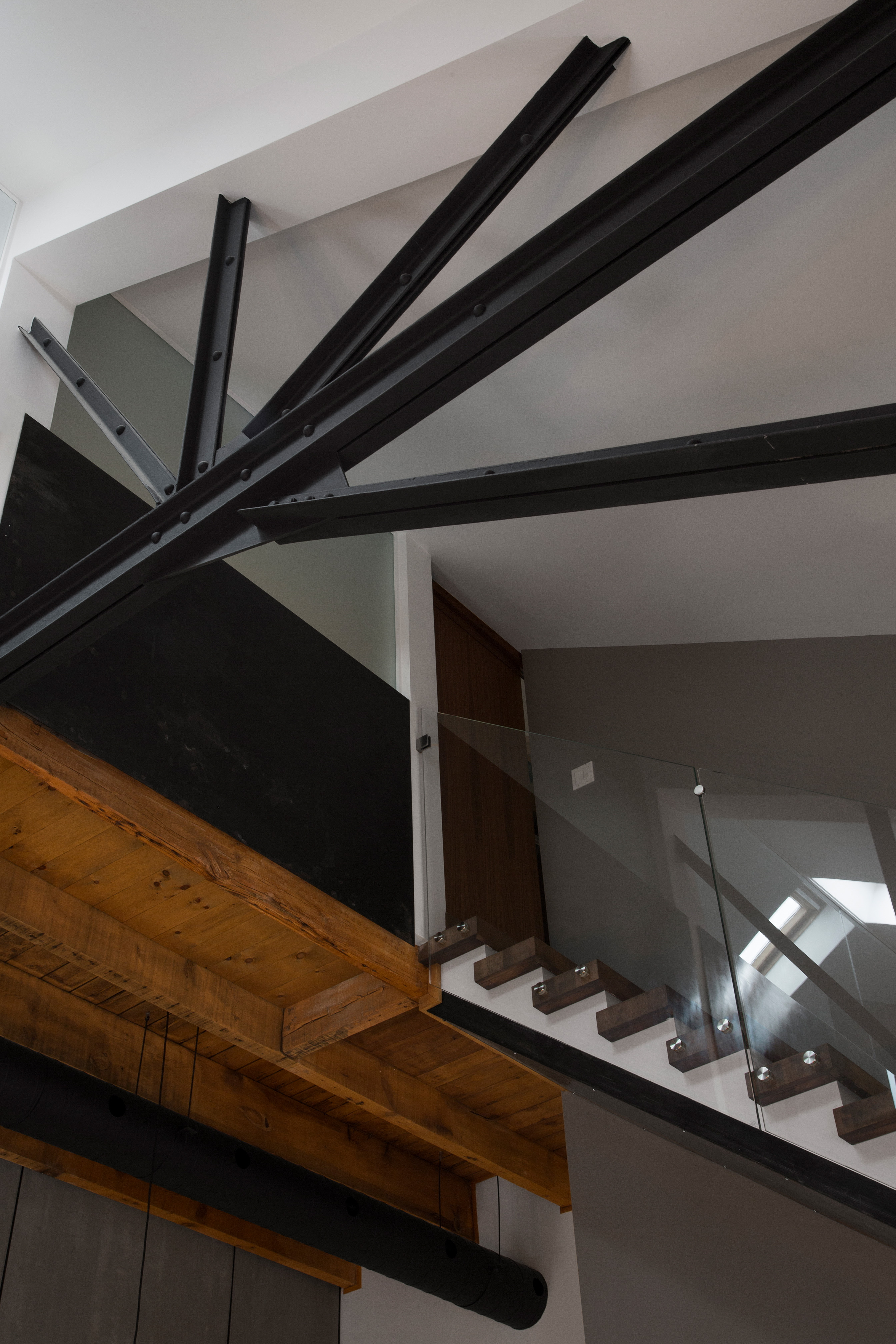 Architekci zdecydowali się na otwarcie wnętrza, co pozwoliło w pełni docenić oryginalną bryłę budynku z dwiema potężnymi murowanymi ścianami, stalową strukturą i imponującą wysokością sufitów.