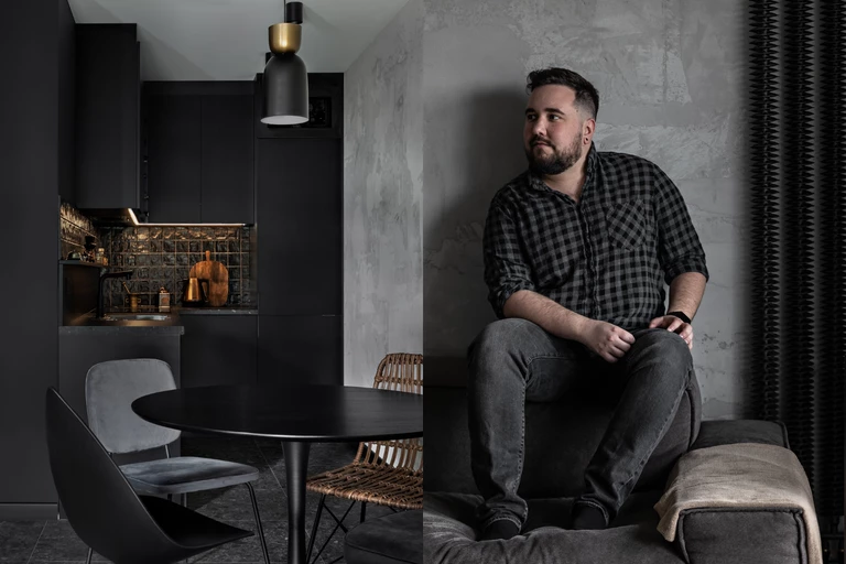 Dla wielu projektantów wnętrz praca nad własnym mieszkaniem jest wielkim wyzwaniem. Medard od początku wiedział, jaki efekt chce osiągnąć. Oprócz wspomnianej czerni, zależało mu na tym, by w mieszkaniu znalazły się drewniana podłoga, duża, miękka sofa oraz czarna zabudowa kuchenna.