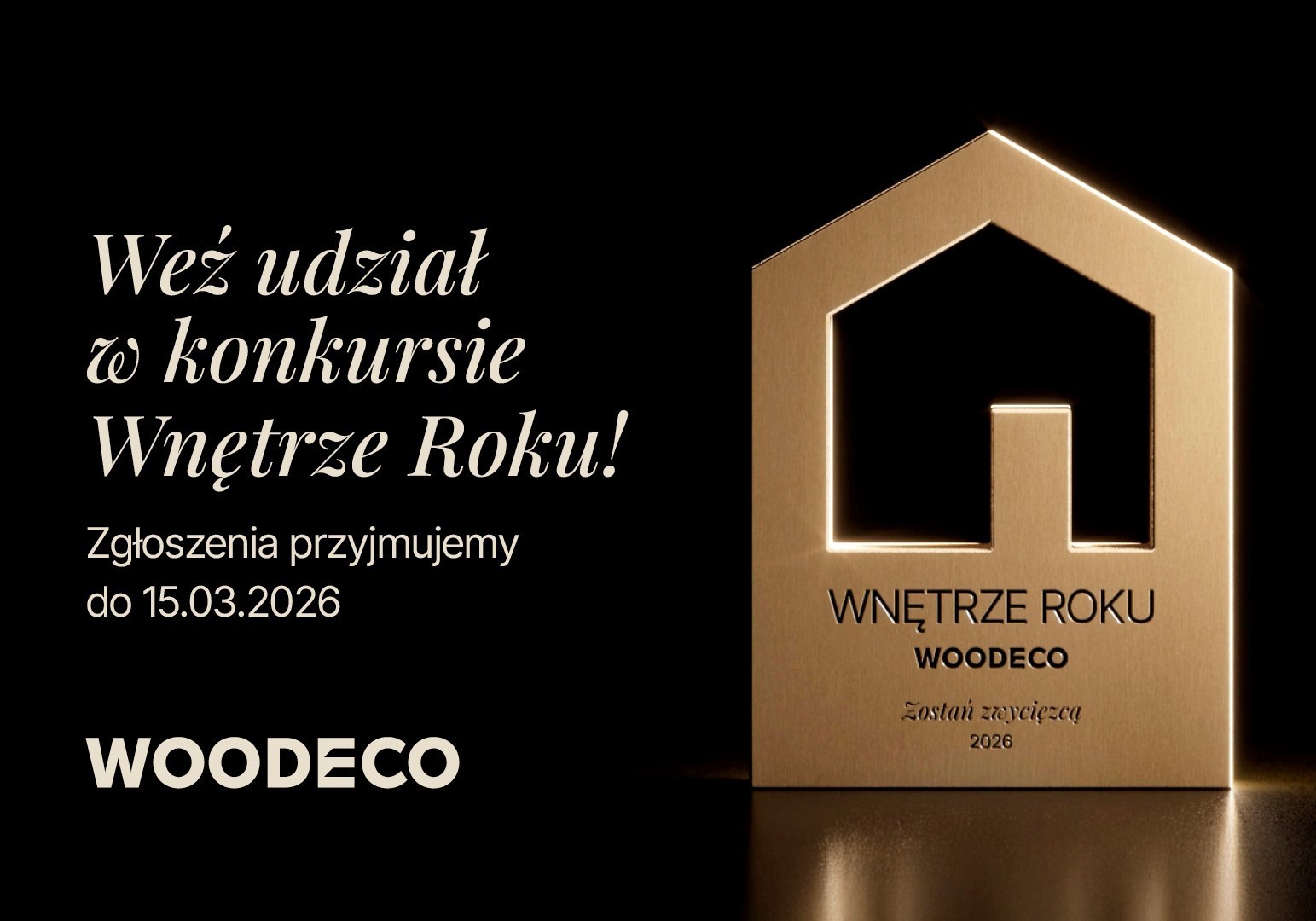 Konkurs Wnętrz Roku to inicjatywa, dedykowana zarówno profesjonalistom z branży projektowania wnętrz, jak i debiutującym talentom, którzy chcą zaprezentować swoje pomysły w oparciu o kolekcje oraz produkty marki Woodeco, m.in. najnowszą odsłonę kolekcji Mood Stories 2025-2028 czy produkty Deep Matt. Nowa edycja konkursu, to wyjątkowa okazja, by zaprezentować swoje realizacje, zyskać uznanie ekspertów, a także dołączyć do grona ambasadorów jednego z największych producentów materiałów drewnopochodnych w Polsce. Konkurs potrwa od 17 listopada 2025 do 15 marca 2026 roku, więc czasu na przygotowanie i zgłoszenie projektu jest sporo.