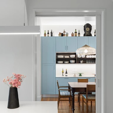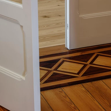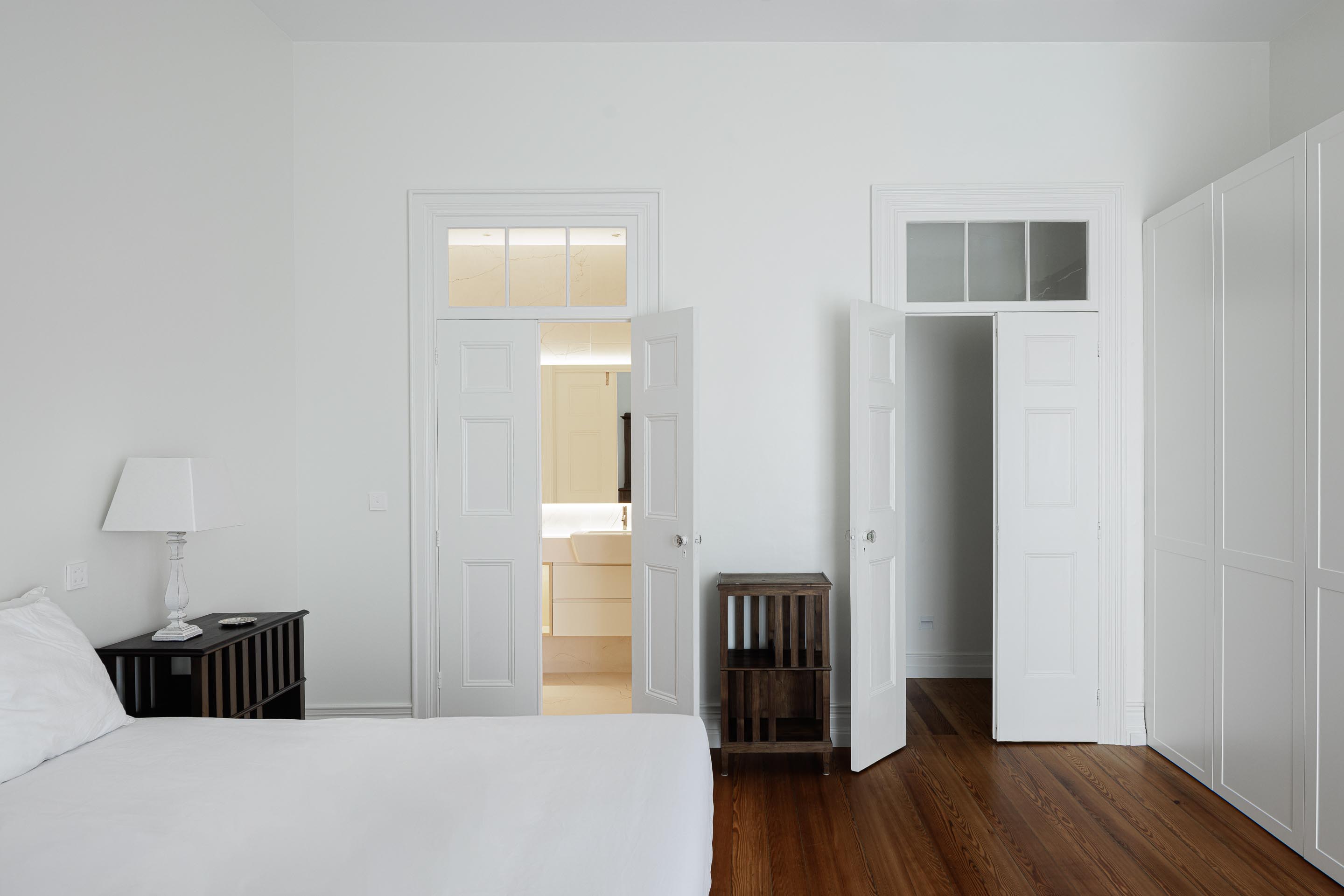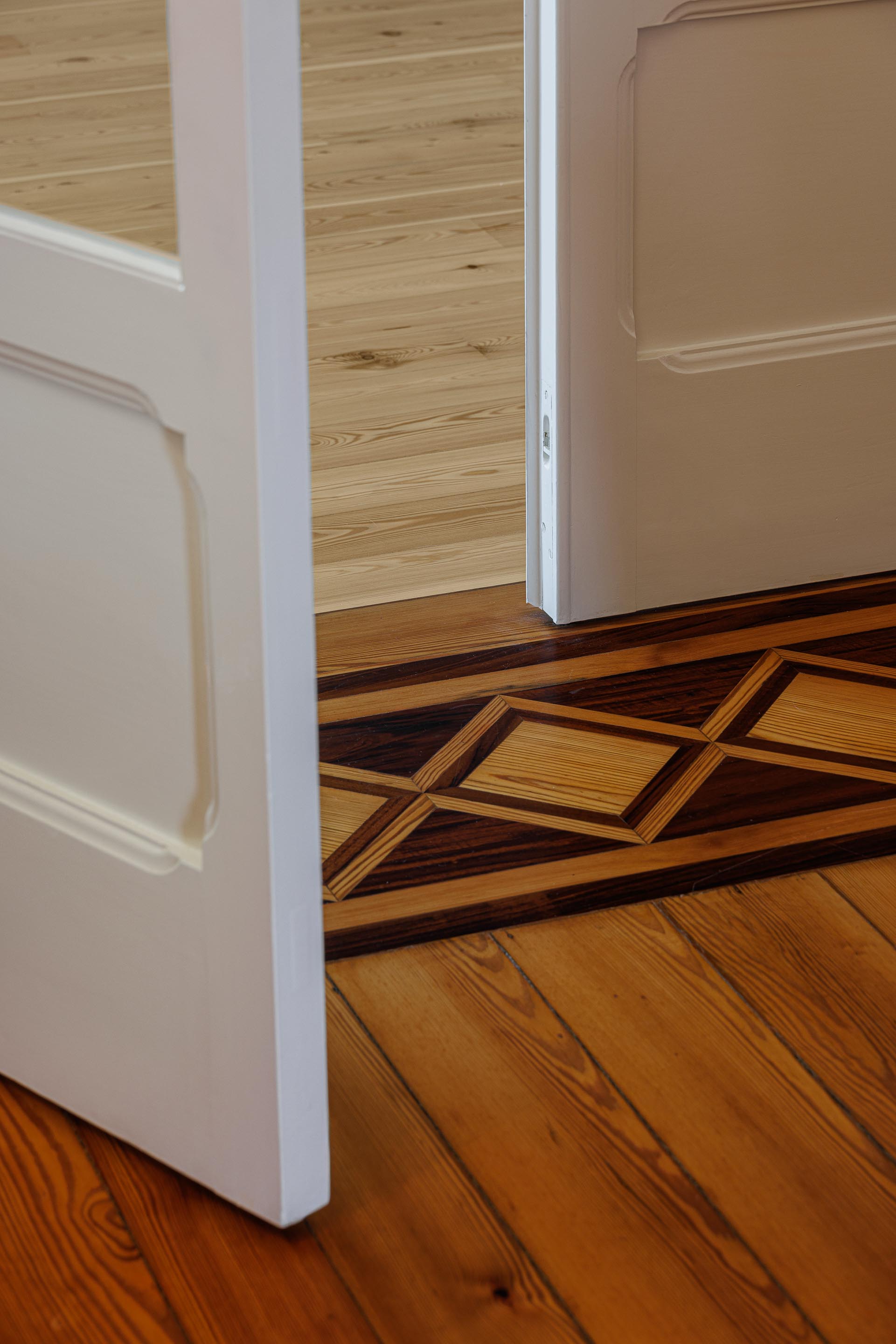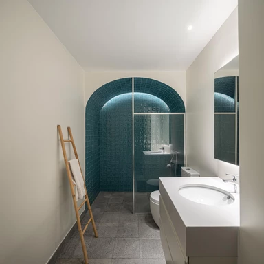 Istotną rolę we wnętrzu odgrywa światło dzienne, wprowadzane przez istniejące otwory i wzmacniane tam, gdzie codzienne życie skupia się najintensywniej. We wnętrzach przywrócono, tam gdzie było to możliwe, oryginalne podłogi drewniane, stolarkę i klatkę schodową, a część prywatna zyskała większą autonomię dzięki własnym łazienkom, podczas gdy strefy wspólne stały się bardziej płynne i otwarte wizualnie.