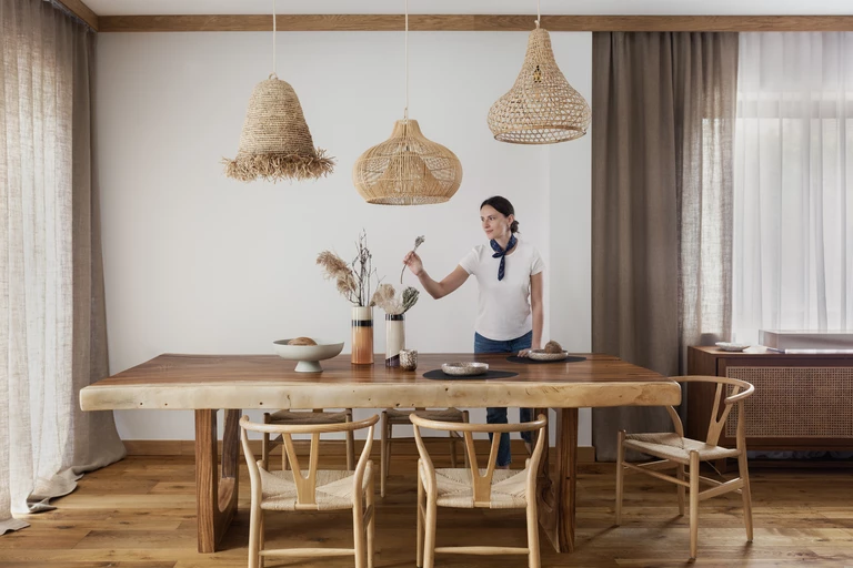 Zaglądamy do przytulnego domu o powierzchni 230 metrów kwadratowych, położonego na warszawskich Kabatach. Projektantki ze studia Rysik przeprowadziły całkowitą renowację zastanego wnętrza, wprowadzając do niego niezobowiązujący klimat boho.