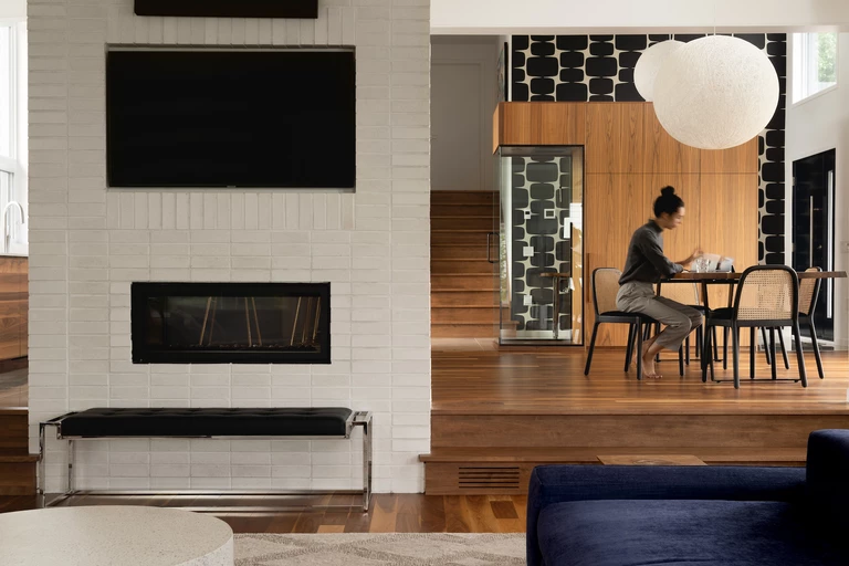 Dom znajduje się w Quebecu, w miejscowości St-Hilaire. Właściciele potrzebowali dwukrotnie więcej przestrzeni, niż mógł im zaoferować stary budynek, dlatego zdecydowali się na dość radykalną rozbudowę.