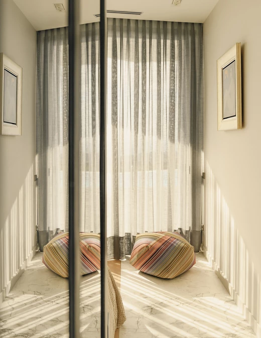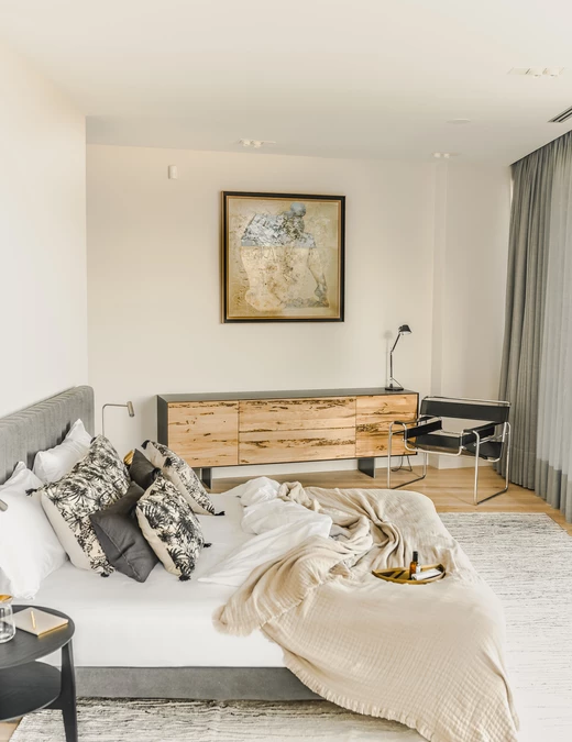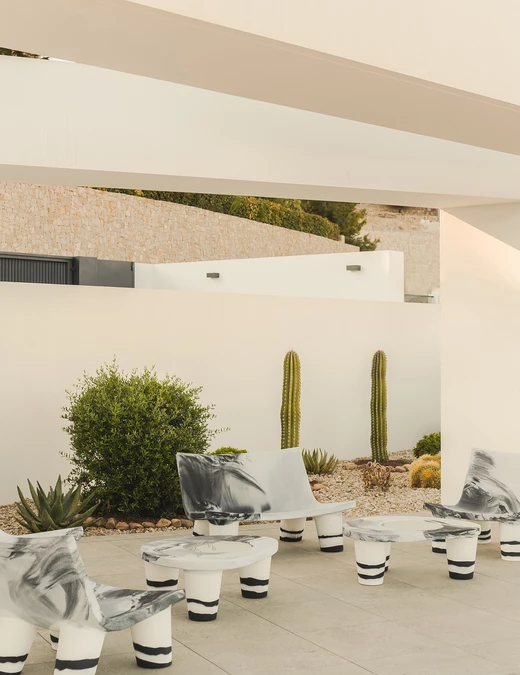 Nie brakuje tu też mebli polskich producentów i twórców, na przykład znajduje się tu łóżko marki Nap czy stołek Plopp projektu Oskara Zięty. Właściciele nie zapomnieli również o lokalnych artystach, dopełniając całość zewnętrzną rzeźbą Toniego Mari.