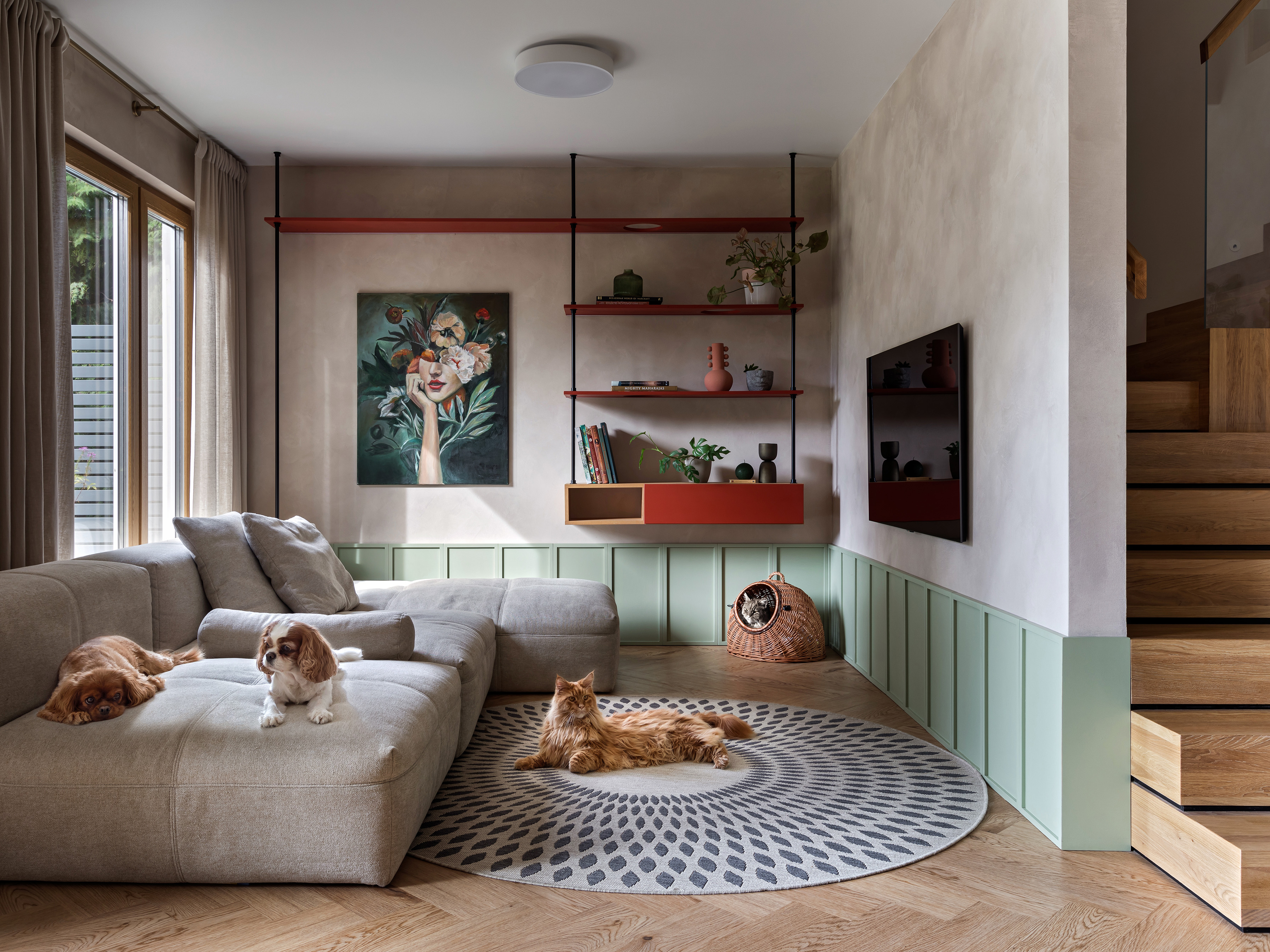 Ten warszawski dom stworzony dla czteroosobowej rodziny i ich czterech zwierząt, łączy swobodę z ciepłą, domową atmosferą. Projektanci z MIRRO STUDIO stworzyli przestrzeń, w której zamiast chłodnego luksusu pierwsze skrzypce grają pasje domowników oraz bliskość natury.