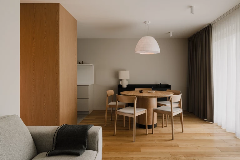 Zaprojektowane przez Magdę i Dominikę z pracowni The Line Studio mieszkanie o powierzchni 65 m² znajduje się w cichej dzielnicy Krakowa, tuż przy Lasku Wolskim. Projekt idealnie odzwierciedla potrzeby właścicielki – młodej lekarki, która po intensywnych dniach pracy szuka odpoczynku i kontaktu z...