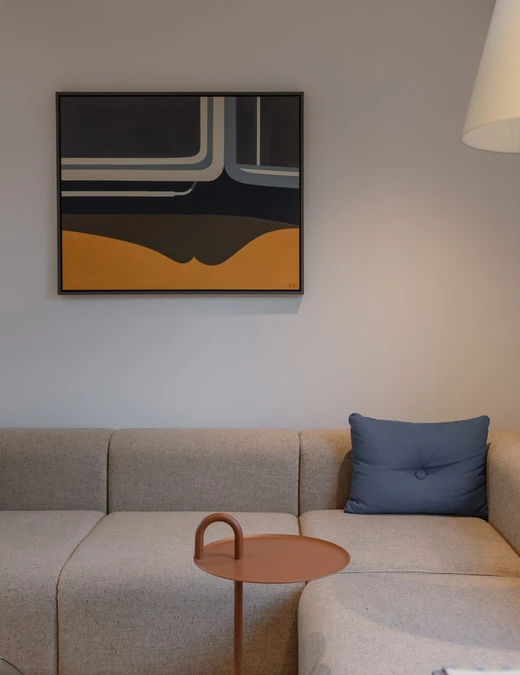 Biel, dąb i kamień tworzą tło, na którym mogą wybrzmieć grafiki, rzeźby oraz kolekcjonerskie meble.