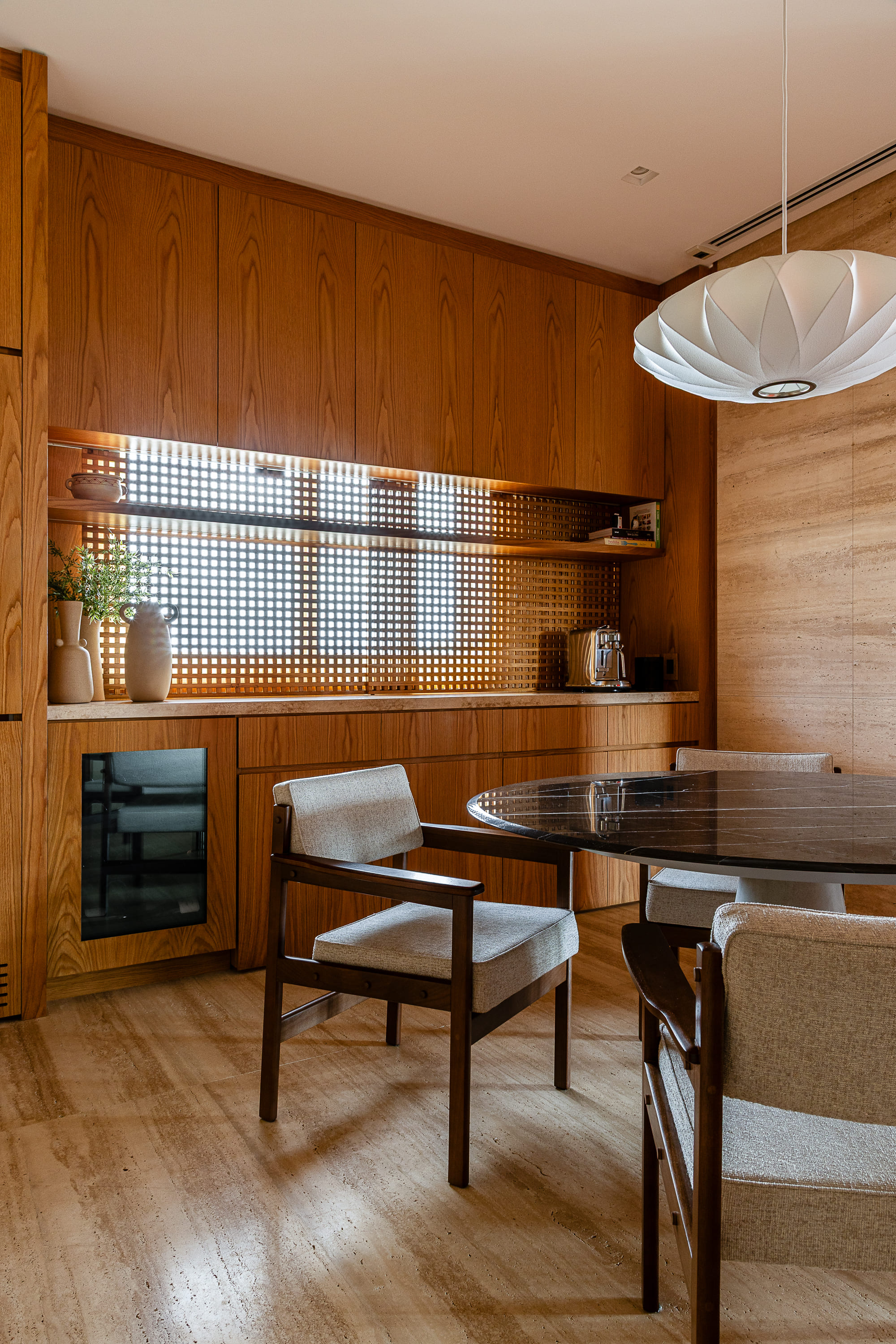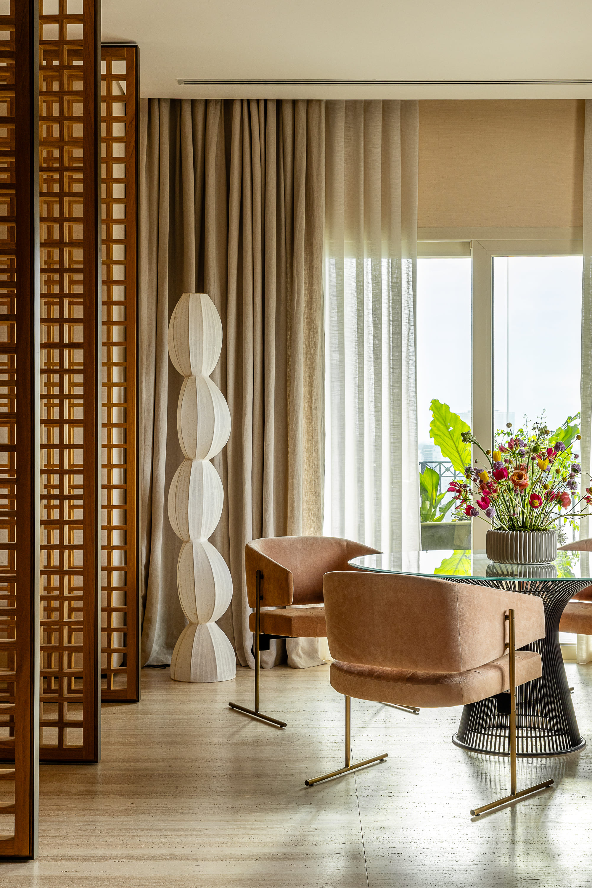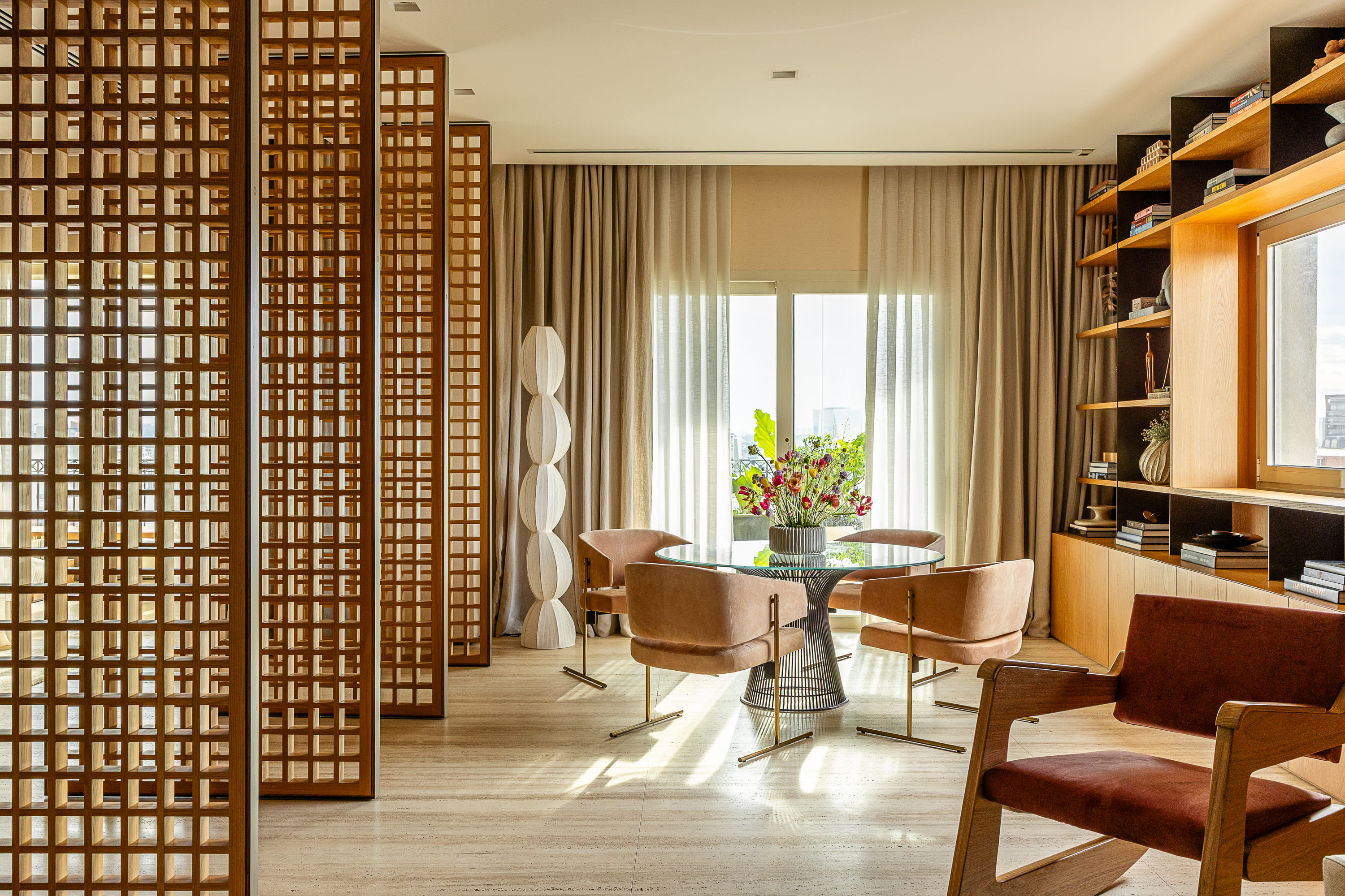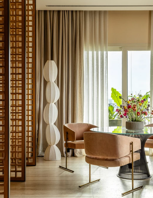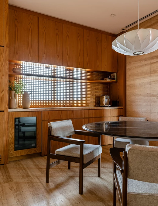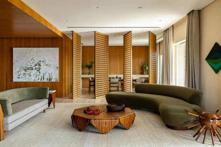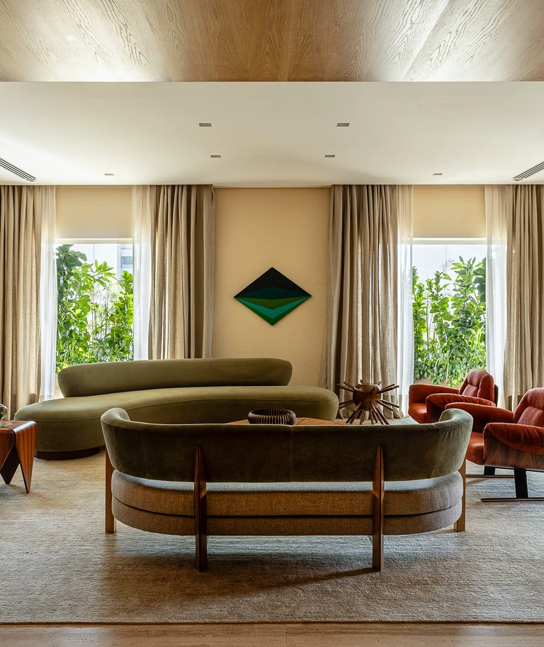 Zlokalizowany na 20. piętrze budynku w pobliżu Parku Ibirapuera, apartament o powierzchni 515 m² otwiera się na São Paulo widokiem obejmującym niemal 270 stopni. Tak wyjątkowa perspektywa stała się punktem wyjścia dla projektu: przestrzeń miała celebrować zarówno kontemplację, jak i wspólne chwile, zachowując równowagę pomiędzy integracją i prywatnością, otwartością i introspekcją.