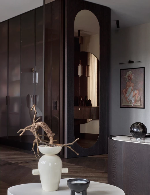 Właścicielka tego apartamentu nie ma wątpliwości, że potęga zarządzanej przez nią firmy wypływa z zaangażowania dziesiątków osób. Gra zespołowa jest też źródłem sukcesu w rearanżacji mieszkania. Inwestorka i projektantki nawzajem uważnie się słuchały. Ponadto architektka wnętrz i projektantka mebli pracowały równocześnie, aby w szybkim tempie osiągnąć idealny rezultat. Z kolei dzięki zastosowaniu wysokiej jakości materiałów od sprawdzonych producentów wnętrze stało się ponadczasowe, niepowtarzalne i trwałe – tak, by nic ze swej urody nie straciło nawet po latach.