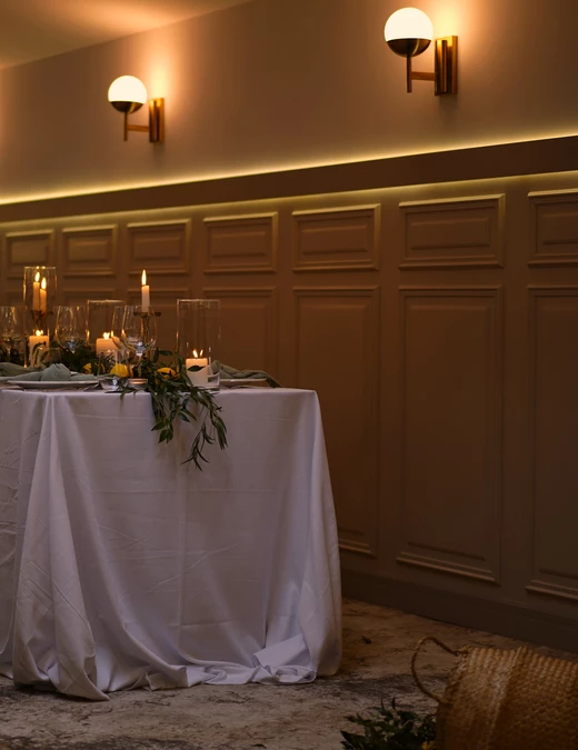 Ze względu na przenikające się wertykalnie przestrzenie sali (parter - strefa uroczystości) oraz antresoli (1. piętro - strefa hotelowa) Weronika Cwanek zdecydowała o unifikacji kolorystycznej. Dzięki zastosowaniu neutralnych kolorów stworzono doskonałą przestrzeń dla działań dekoratorów i florystów. Zarówno sala, jak i antresola wymiennie mogą pełnić rolę śniadaniarni dla gości hotelowych i przestrzeni dla stylowych bankietów.