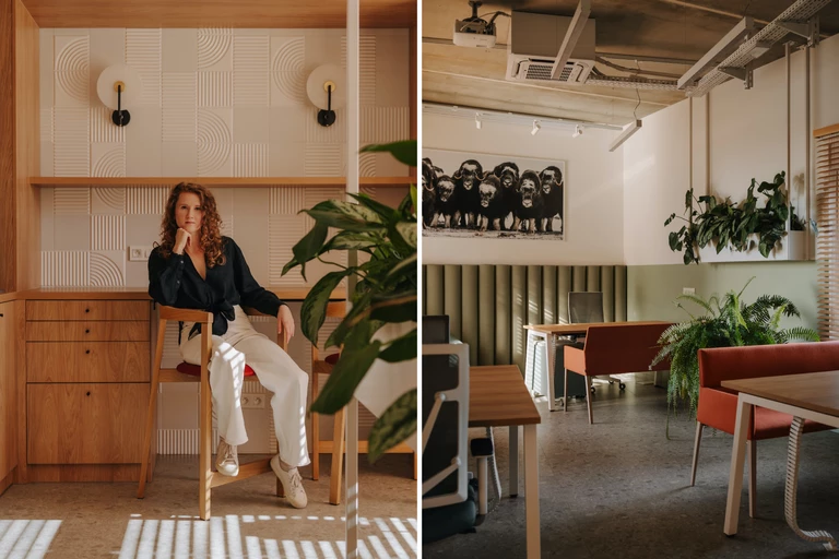 Ta przestrzeń o powierzchni 80 m2 została zaaranżowana na potrzeby biurowe. „Wnętrze ma pozytywny klimat i elastyczną formę, sprzyjającą budowaniu relacji pomiędzy pracownikami i skupianiu się na swoich obowiązkach. Jest w nim miejsce zarówno dla zatrudnionych przebywających w nim na co dzień, jak i pracowników mobilnych, odwiedzających biuro od czasu do czasu” – opowiada architektka wnętrz Paulina Wolniak, autorka aranżacji.