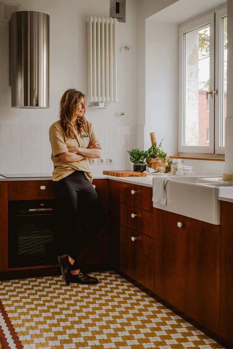 69-metrowe mieszkanie w przedwojennej kamienicy na warszawskim Powiślu to efekt rocznej, nieszablonowej współpracy. Projekt przy Fabrycznej 25, zrealizowany w 2025 roku przez Ksymena K. Pracownia, powstał dla pary miłośników dawnego wzornictwa użytkowego, przedwojennego modernizmu i lamp z epoki space age.