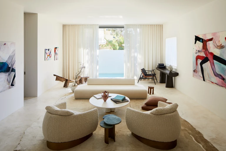 Wysokie sufity, świetliki oraz podłoga z wapienia złożyły się na niezwykle wysmakowaną całość. Wyjątkowości przestrzeni dodają takie rozwiązania architektoniczne, jak okrągłe okna czy spiralne schody. Ponadto dom posiada tarasy i balkony, na których również przedstawiane są obiekty wchodzące w skład kolekcji galerii.