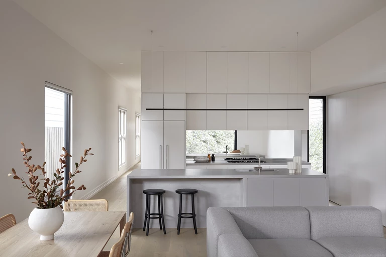 Biały, edwardiański domek, znajdujący się przy cichej ulicy na przedmieściach Melbourne został przekształcony w pełną światła nowoczesną rezydencję dla kilkuosobowej rodziny przez australijskie studio projektowe Pierce Widera.