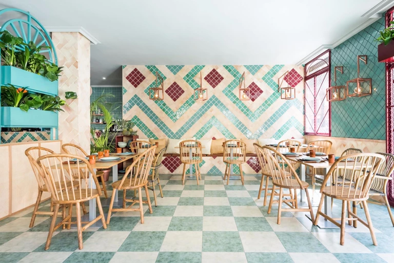 Nowa przestrzeń dla Albabel jest wyraźnie inspirowana andaluzyjskimi korzeniami ich założycieli. Nieprzypadkowy jest także wybór kolorów. Do produkcji mebli użyto drewna oliwnego.
