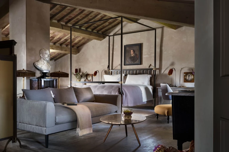 We wszystkich pokojach znajdują się podłogi z drewna lub terakoty, ręcznie szyte lniane zasłony, włoskie tkaniny oraz lokalnie wykonane umywalki z marmury i mosiądzu. Stylizowane łóżka oraz oświetlenie zostały wykonane na zamówienie, ale wiele znajdujących się tu przedmiotów zakupiono na targach staroci