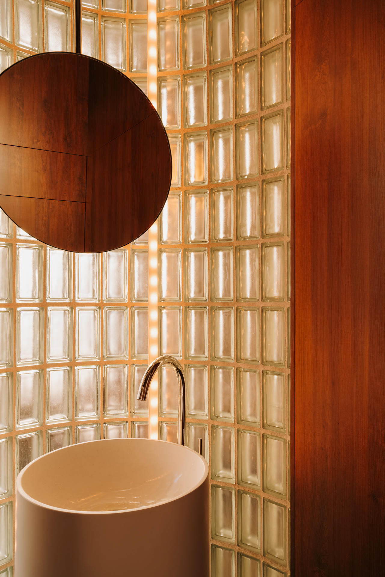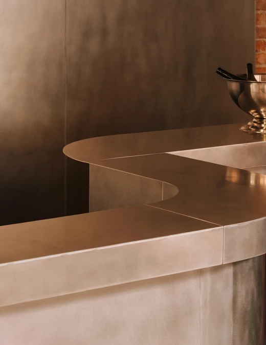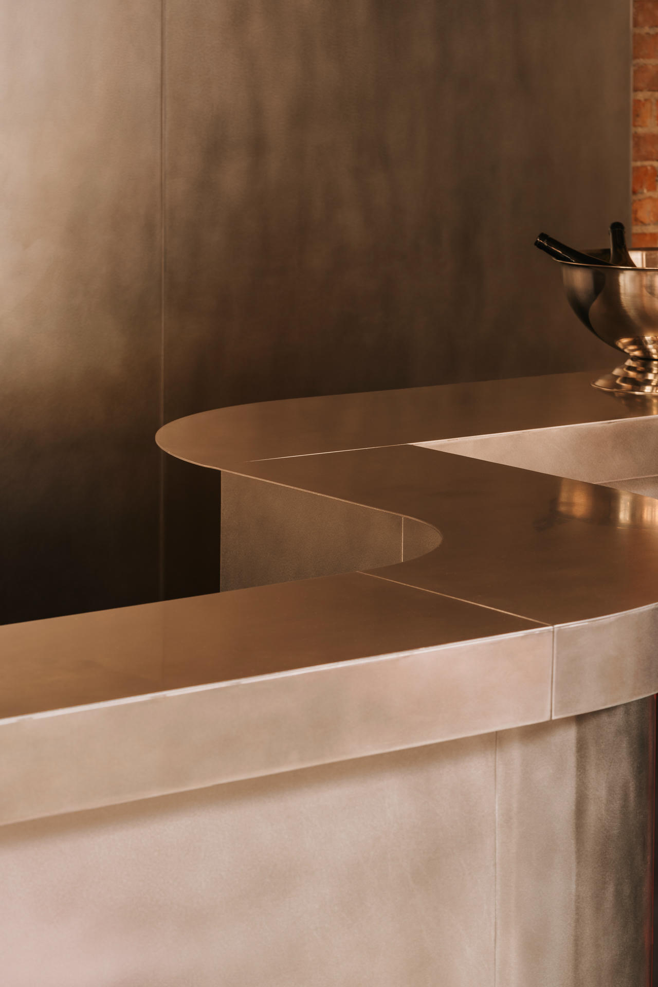 Kluczowe elementy wyposażenia – w tym zabudowę baru i okładziny ścienne – wykonano pod marką UTLT, łącząc projektowe podejście studia z rzemieślniczą precyzją.