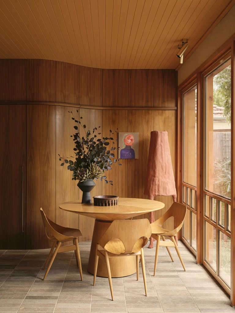 Połączona przestrzeń kuchni i części dziennej została nasycona cytrusowym odcieniem, który przy zachodzącym słońcu tworzy ciepłą poświatę – szczególnie potrzebną podczas chłodnych, zimowych miesięcy w Melbourne.