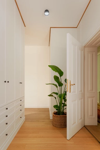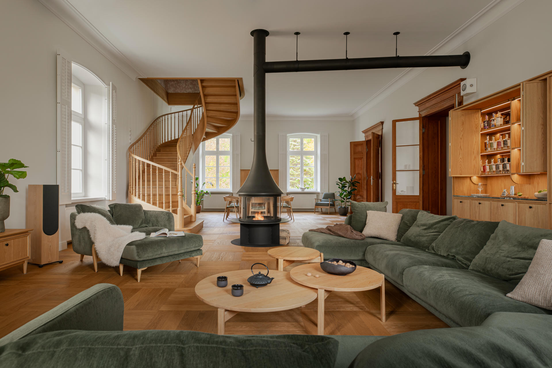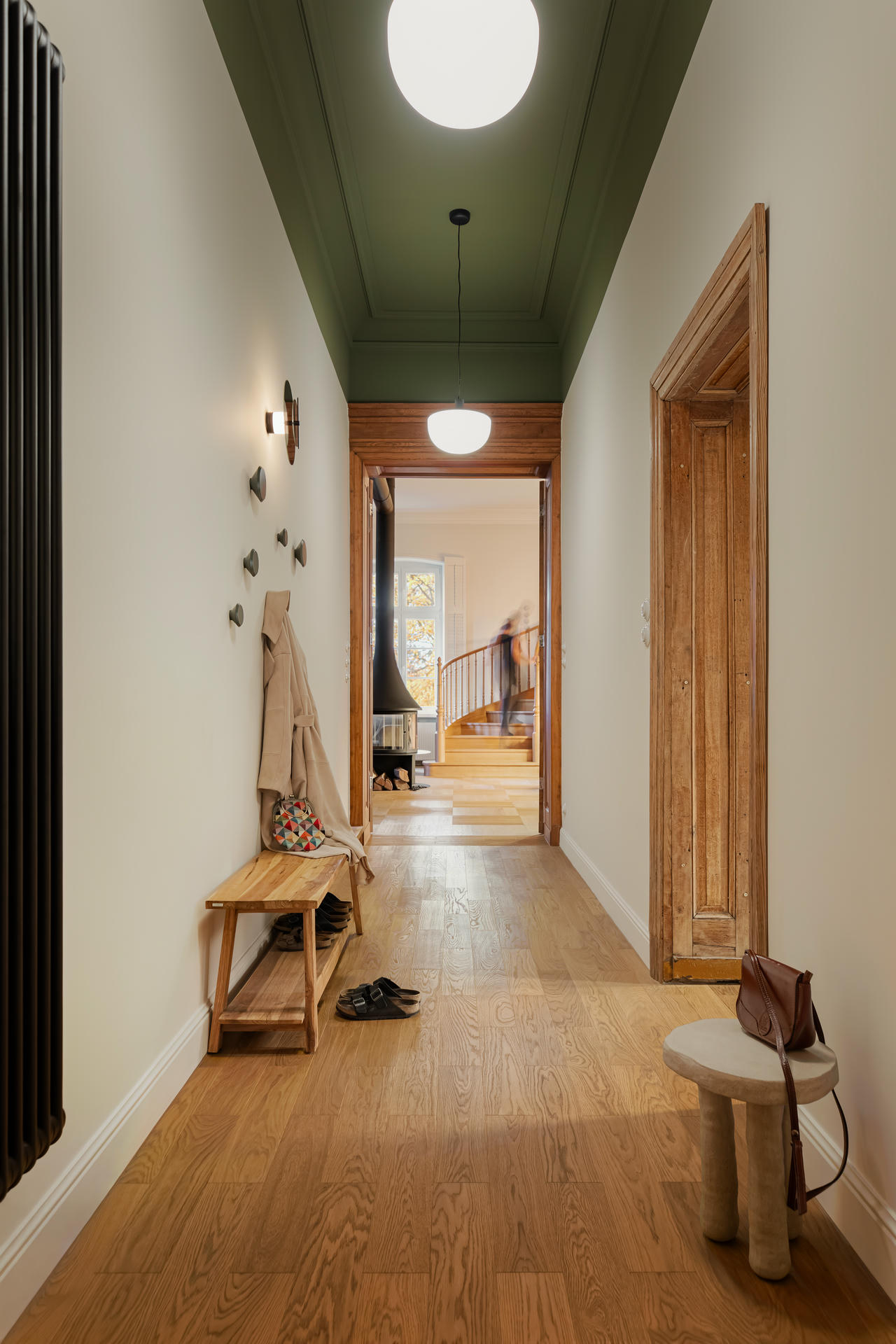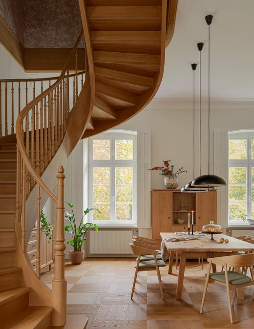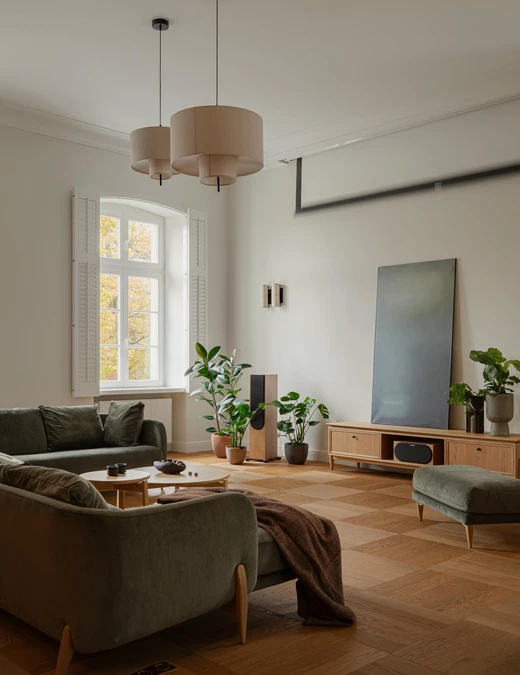 „Harmonia, ciepło, spokój… To były nasze wrażenia po pierwszym spotkaniu z inwestorami” – wspominają autorzy projektu z pracowni Szydlik Wnętrza. Okazuje się, że to pierwsze wrażenie zostało z nimi na dłużej, bo to ono ukierunkowało klimat wnętrza części mieszkalnej pałacu z połowy XIX wieku.