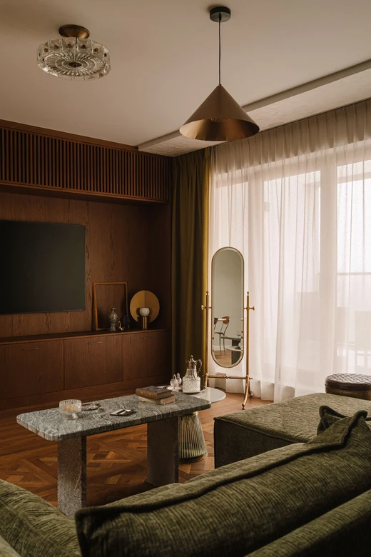 Ponad 100-metrowe mieszkanie na ostatnim piętrze nowego osiedla w centrum Warszawy to efekt odważnego połączenia dwóch przeciwstawnych stylów. Studio projektowe P/art stworzyło przestrzeń, w której nowoczesność spotyka się z vintage, a każdy detal ma swoją historię. Projekt powstał we współpracy z inwestorami, którzy mieli jasną wizję – on kochał nowoczesność, ona – wszystko, co stare i z duszą.