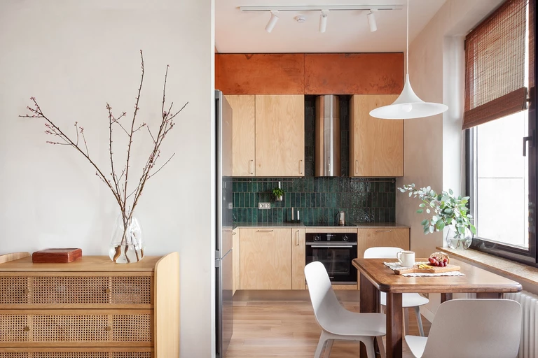Wnętrze tego mieszkania szczególnie pokochają miłośnicy ciepłych kolorów i naturalnych materiałów. Przestrzeń, którą dziś Wam prezentujemy, jest jednak nie tylko estetyczna, ale także funkcjonalna. Projektantka Natasha Baranova postarała się, aby maksymalnie wykorzystać 66 m2 dostępnej powierzchni.