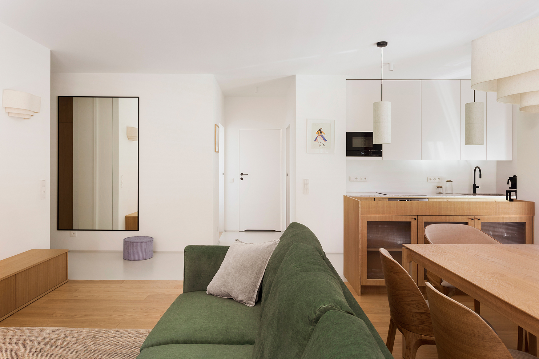 Celem projektantek było stworzenie wnętrza odpornego na przemijające mody, w którym prostota idzie w parze z jakością i komfortem. Efekt? Harmonijne, przyjazne i ponadczasowe mieszkanie, które idealnie oddaje filozofię Schudy Studio – projektowania z myślą o człowieku i jego codzienności.