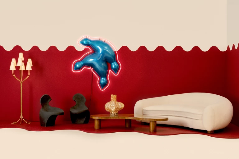 Produkty Jouffre dopełniają dzieła niezaprojektowane przez projektantów marki, co stanowi wyraz szacunku do twórczości ich autorów. Ponadto to dowód, że obiekty od Jouffre świetnie korespondują ze współczesną sztuką i wzornictwem. W pomieszczeniu znalazły się na przykład drewniana, lakierowana na czarno lampa podłogowa projektu Minjae Kim, stolik kawowy z rzeźbionymi nogami z drewna autorstwa Iana Feltona czy surrealistyczne obrazy Garance Vallée.