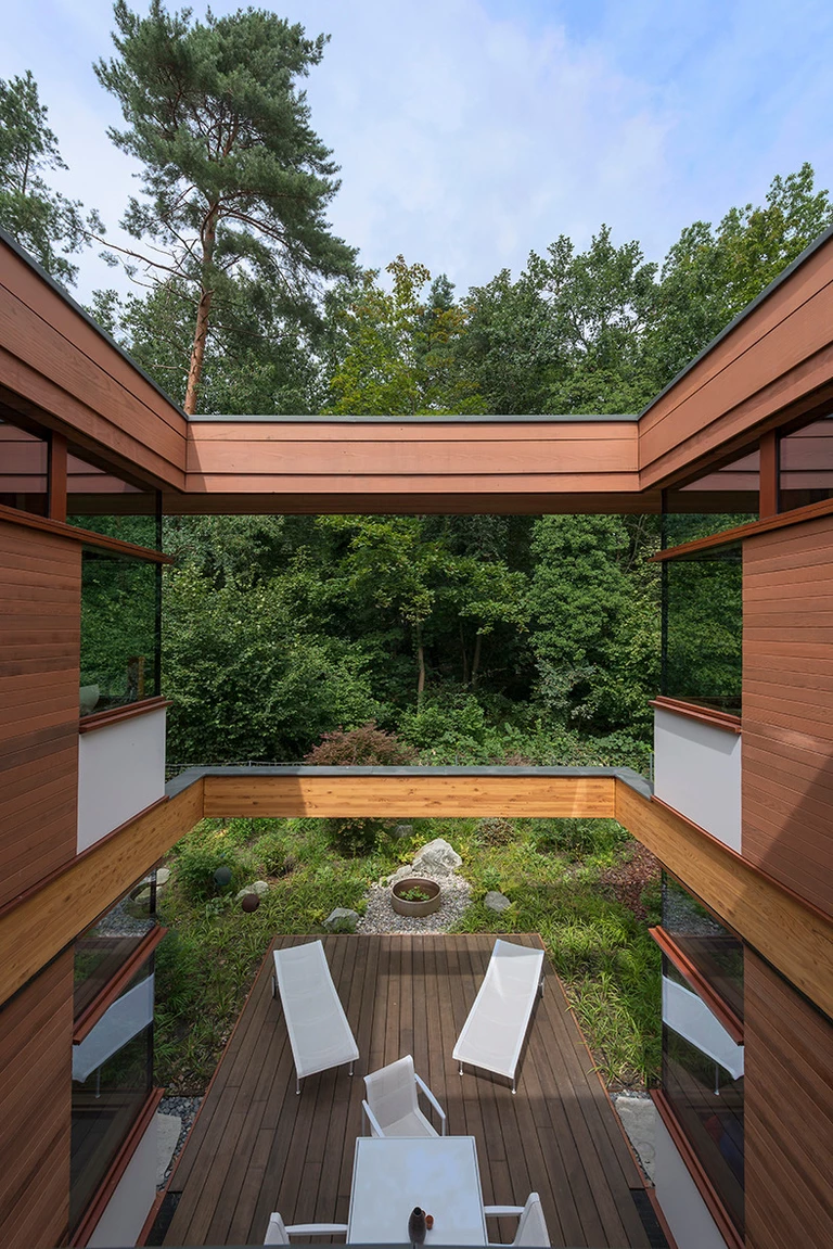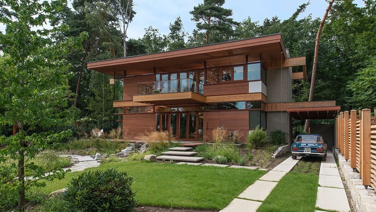 Jego domy to niekończąca się gra poziomów i otwarć, w których granica między wnętrzem a otoczeniem zdaje się nie istnieć. Trudno było przypuszczać, że ten wskroś amerykański język architektury znajdzie swoją kontynuację w Europie, a konkretnie w zalesionym Kleinmachnow pod Berlinem.