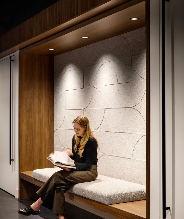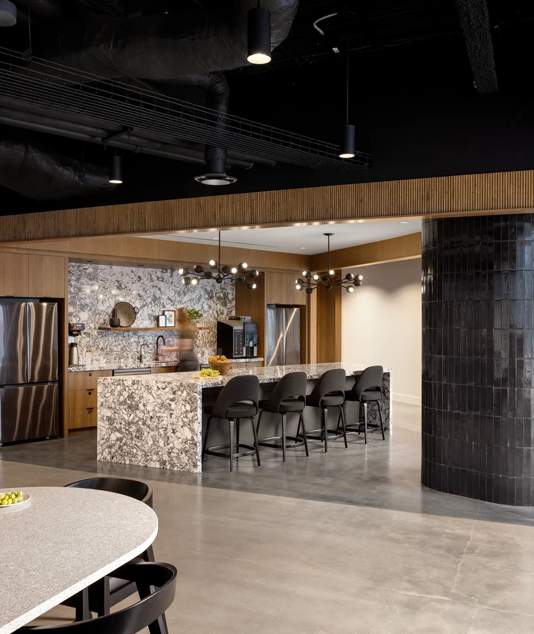 Projekt, który objął cztery piętra w Calgary Manulife Tower, musiał powstać w ekspresowym tempie ośmiu miesięcy. Zamiast typowej korporacyjnej estetyki, zespół Kasian postawił na atmosferę czerpiącą z sektora hospitality oraz wrażliwość modernizmu z połowy XX wieku.
