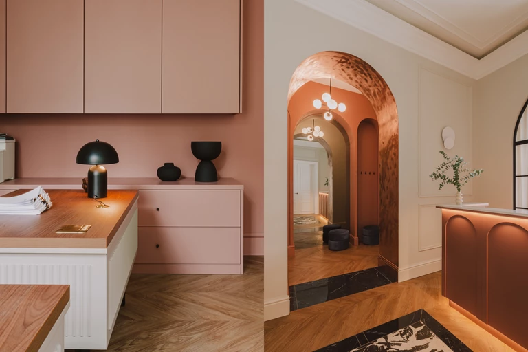 Kancelaria prawna we Wrocławiu. Królują tu beże, róże, miedź i obłe formy