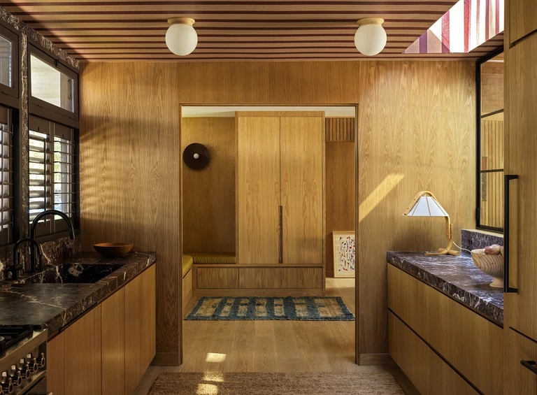 Za renowacją tego modernistycznego domu w Los Angeles stoi Freudenberger Design Studio. Budynek niegdyś należący do fotografa, przez lata pozostawał niemal nietknięty, zachowując charakter epoki. Dziś po starannie przeprowadzonej modernizacji pod kierunkiem Niny Freudenberger, odzyskał dawny blask i stał się ciepłym, funkcjonalnym domem rodzinnym.