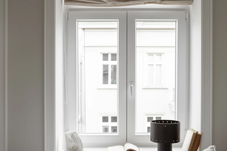 Czy na niewielkim metrażu (niespełna 19 m2) da się stworzyć funkcjonalne i przytulne mieszkanie? Wyzwania podjęła się architektka wnętrz – Nadia Mitłosz. Niewątpliwe atuty tej przestrzeni to wysokość wnętrza (ponad 3 m!) i dwa wielkie okna, które wychodzą na ul. Lwowską i pozwalają obserwować miejskie życie. Projektantka postanowiła uwypuklić piękno okien, ozdabiając je sztukaterią. Farba w kolorze surowej porcelany dodała im klasy.