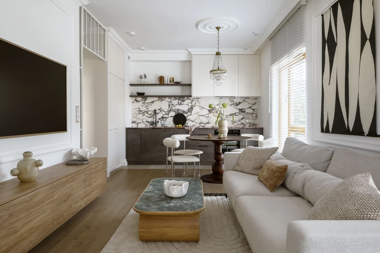 Trochę paryski, trochę śródziemnomorski, ale w stu procentach kobiecy – ten 66-metrowy apartament na warszawskim Mokotowie miał stać się królestwem mamy i córki. Już na pierwszym spotkaniu z klientkami Katarzyna Szostakowska, właścicielka pracowni Kate&Co., odkryła ich zamiłowanie do pięknych przedmiotów i naturalnych materiałów. Zaprojektowała dla nich eleganckie wnętrze, w którym na pierwszy plan wysuwa się surowa uroda drewna, kamienia i ceramiki.