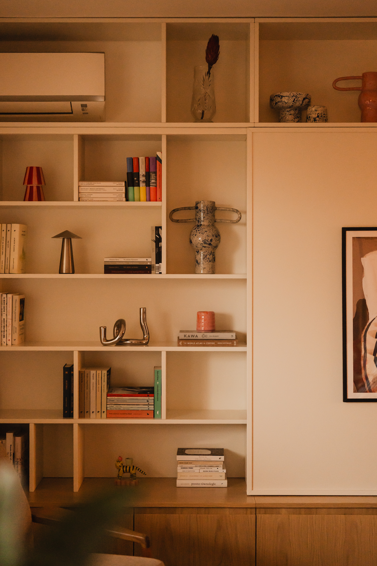 Książki, kolory i akcenty PRL-u. Mieszkanie na Czyżynach