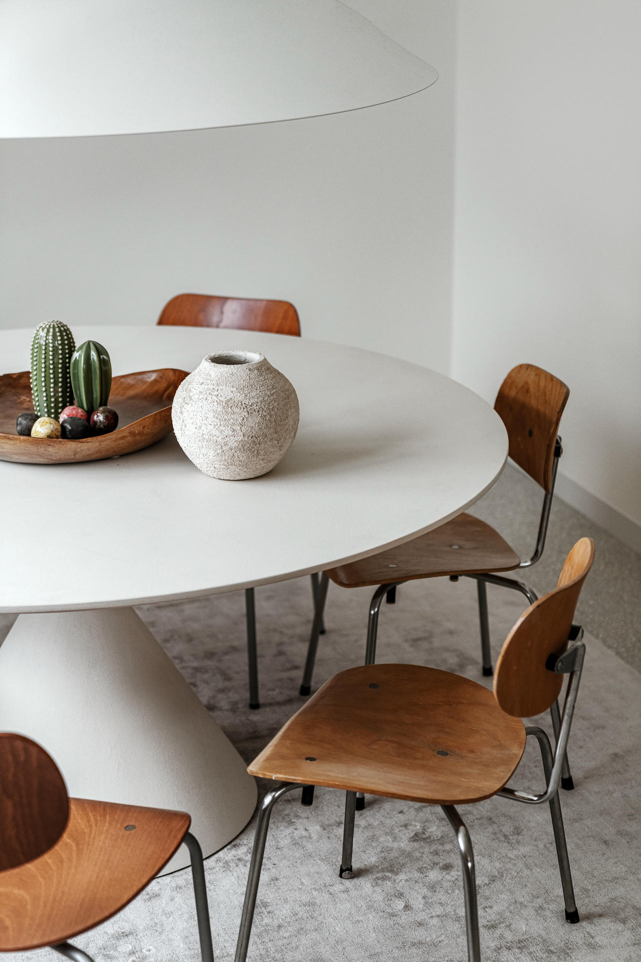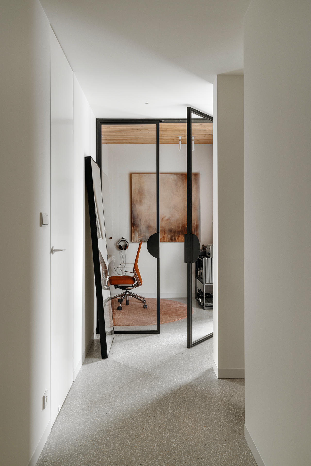 W pierwotnym układzie deweloperskim kuchnia była jedynie przechodnim pomieszczeniem na osi wejście–salon. Zamknięta i dość klasyczna, nie odpowiadała potrzebom inwestorów – a te były wyjątkowe nie bez powodu. Właściciel domu jest pasjonatem gotowania, a przez pewien czas pracował nawet jako szef kuchni w jednej z berlińskich restauracji. Choć obecnie zajmuje się inwestycjami, kulinarna pasja pozostała ważną częścią jego codzienności, podobnie jak zamiłowanie do minimalistycznych wnętrz.