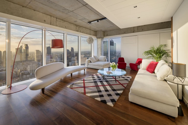 Wysokie, trzydzieste ósme piętro i panoramiczne okna skierowane na zachodnią i północą stronę Warszawy – stolica z tej perspektywy oferuje poetyckie widoki i romantyczne zachody słońca. Mieszkańcy apartamentu 383. mając do wyboru aż trzy sypialnie, znajdą w nim swoje ulubione miejsce. Ponad 170 metrów kwadratowych przestrzeni oferuje dogodne możliwości aranżacji. Każda z sypialni sprawdzi się także jako domowe biuro lub pokój dziecięcy. Sama część dzienna to przestronny salon i jadalnia, które razem zajmują powierzchnię ponad 45 metrów kwadratowych. Sąsiadują z wygodnie zaaranżowaną kuchnią, którą wyposażono w najwyższej jakości sprzęt marki Gaggenau, w tym w chłodziarkę na wino. im i galerią Artutito - Exquisite Art Gallery.